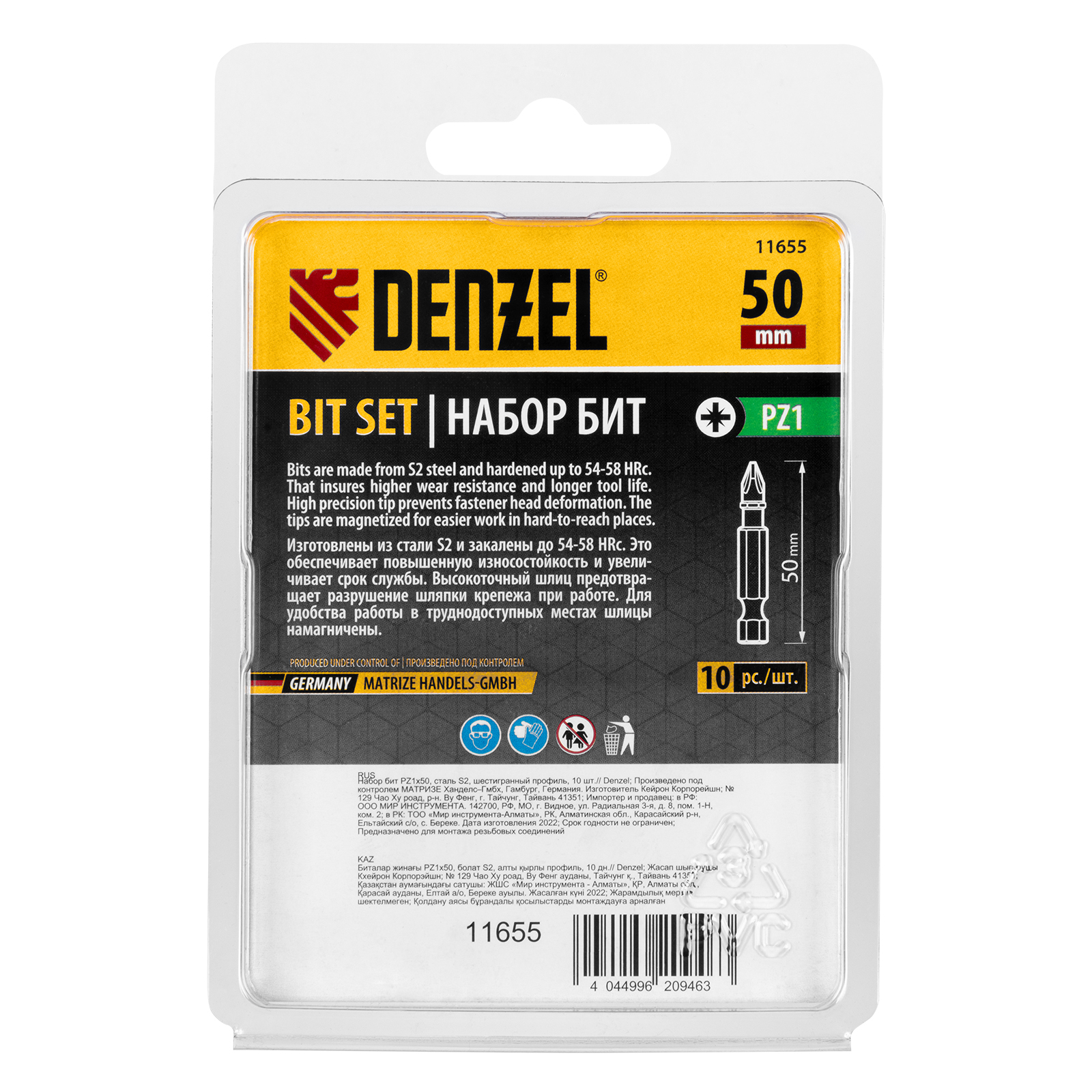 - Защита от подделок — цветное кольцо с логотипом ТМ Denzel на каждой бите подтверждает оригинальность товара.