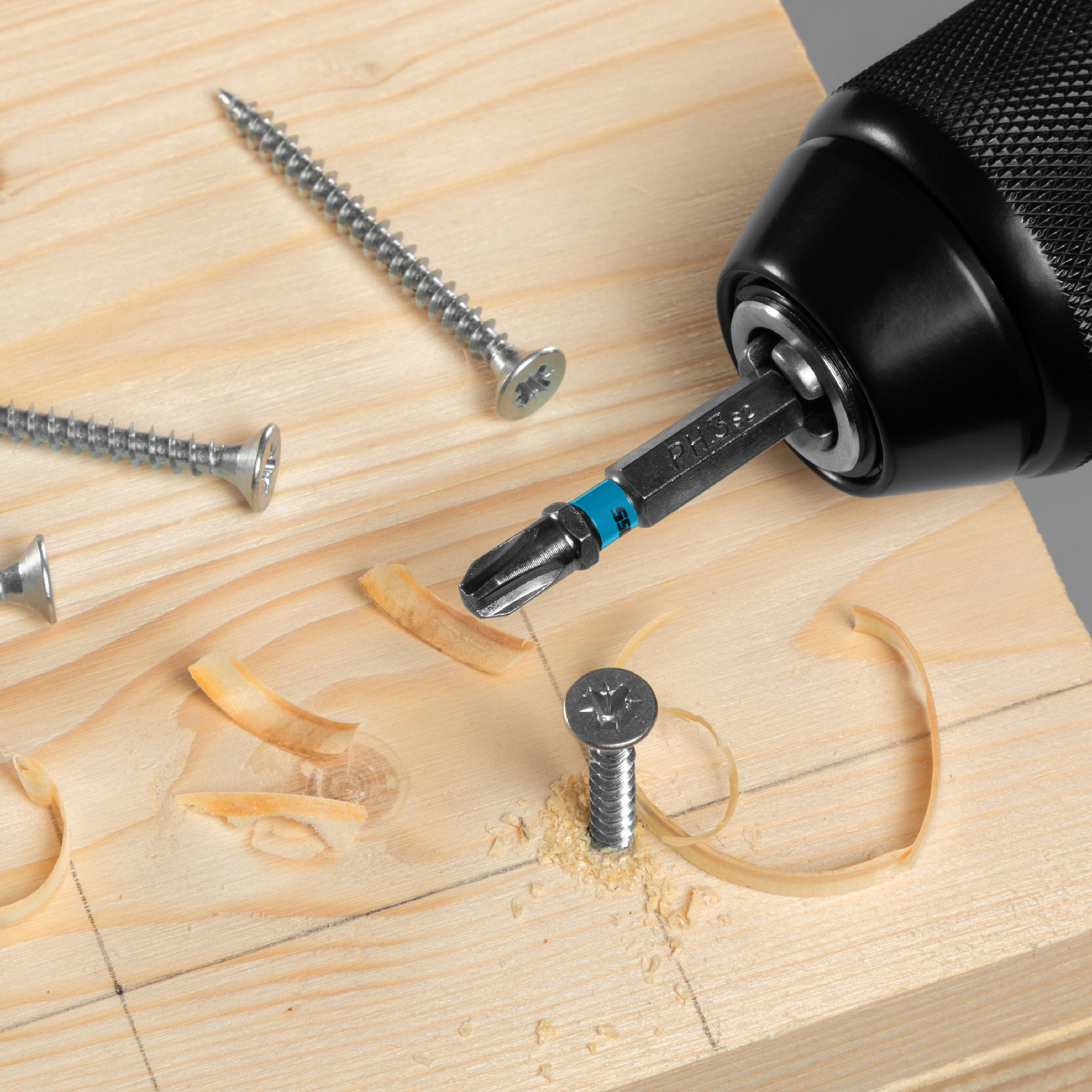 - Износостойкость и долговечность — биты изготовлены из японской легированной стали S2 твердостью 54-58 HRC, поэтому долго сохраняют рабочие свойства.