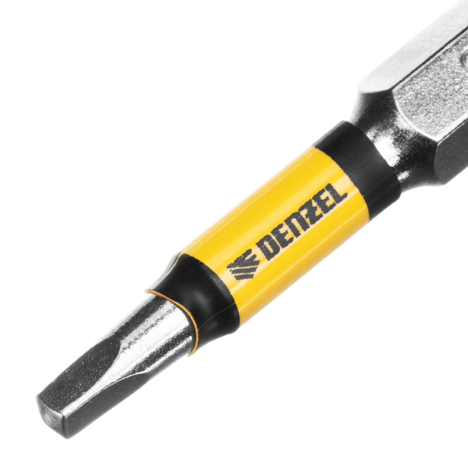 - Защита от подделок — цветное кольцо с логотипом ТМ Denzel на каждой бите подтверждает оригинальность товара.