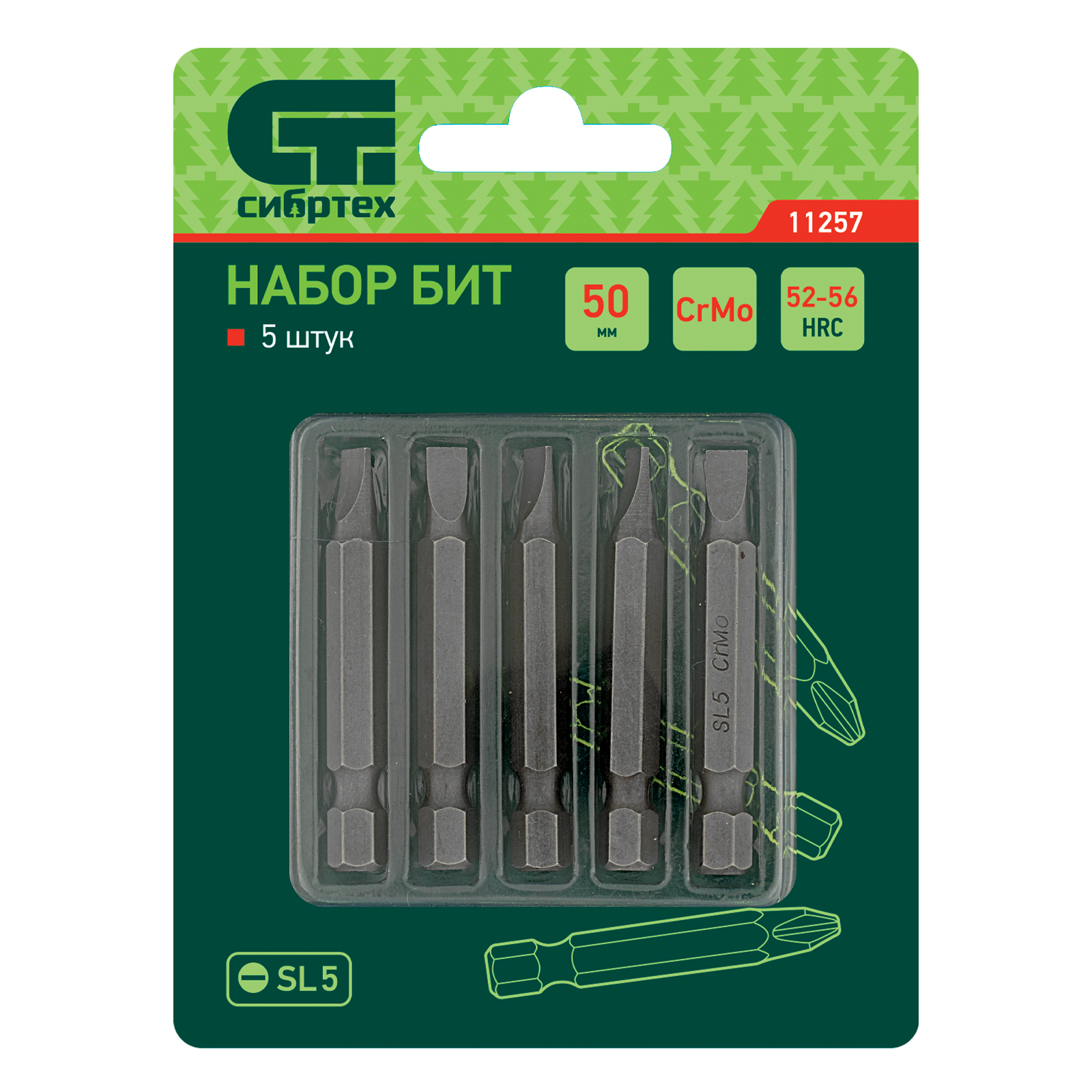 Набор бит Сибртех 11257 включает 5 насадок SL5 x 50 мм из стали CrMo, с шестигранным присоединительным хвостовиком. Они являются сменными оснастками для шуруповертов, реверсивных и электрических отверток. Биты типоразмера SL5 «минус» применяются для монтажа и демонтажа резьбовых крепежей с прямым шлицем и будут полезны во время работ, не требующих большого усилия затяжки.