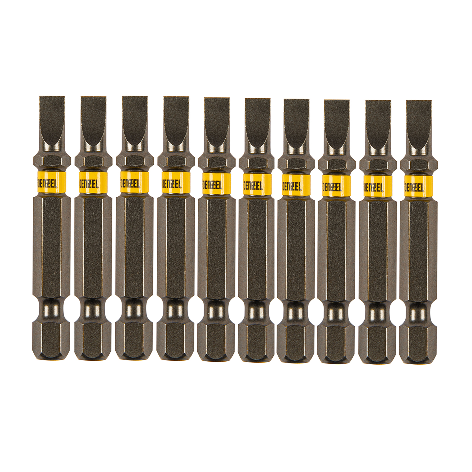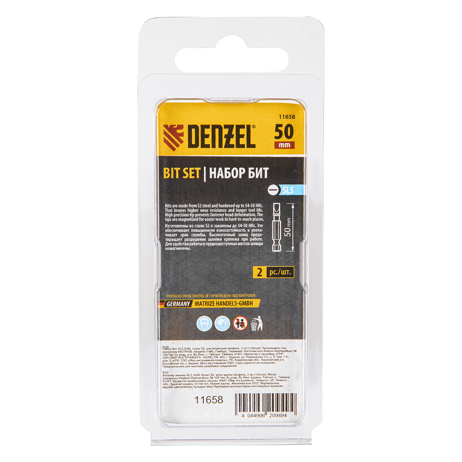 Набор бит SL 5,0 х 50 мм Denzel 11658 включает в себя 2 сменные насадки из стали S2 для шуруповертов и отверток-адаптеров с присоединительным шестигранником 1/4". Биты со шлицами «минус» размером 5 мм применяются при монтаже и демонтаже резьбовых соединений: винтов, саморезов и др.