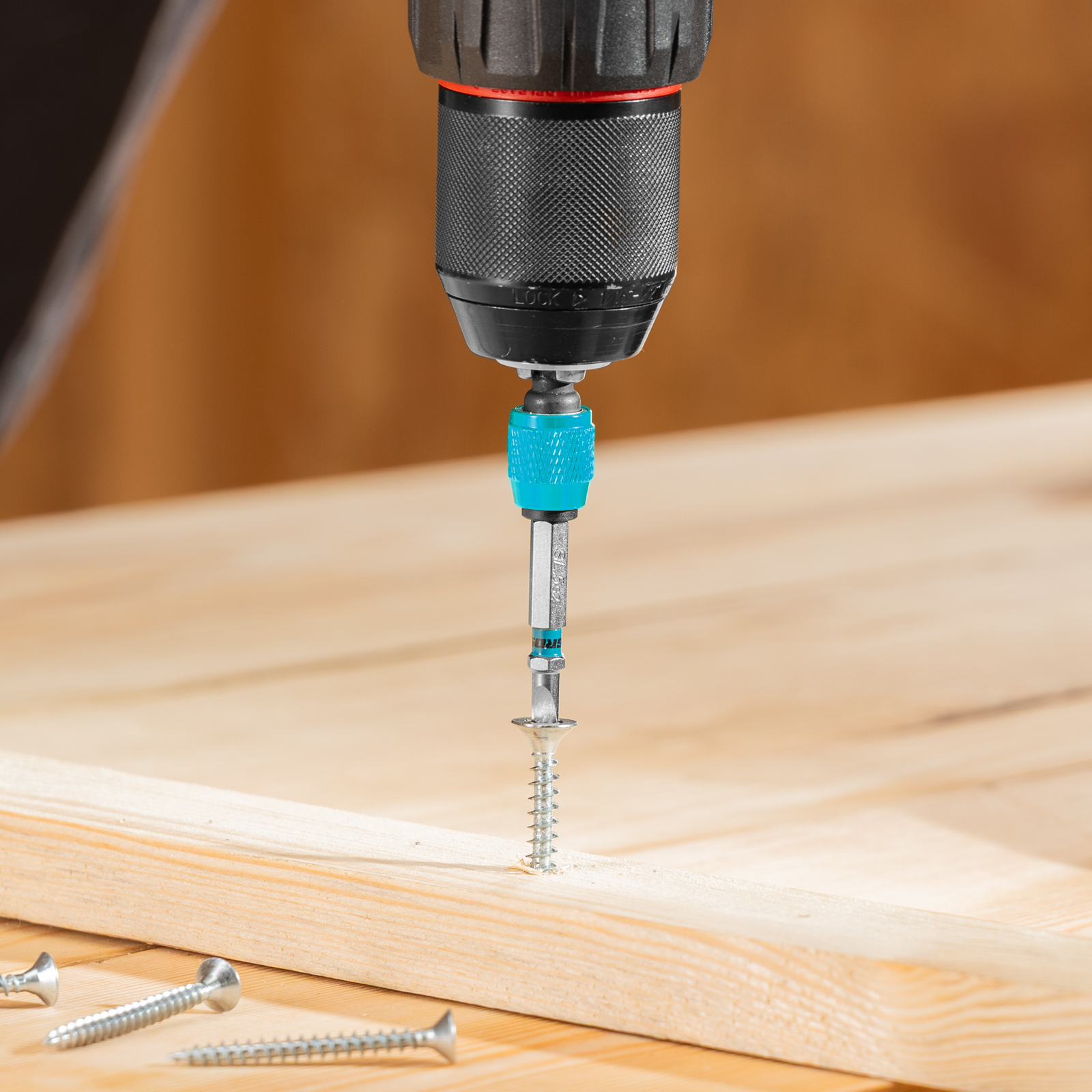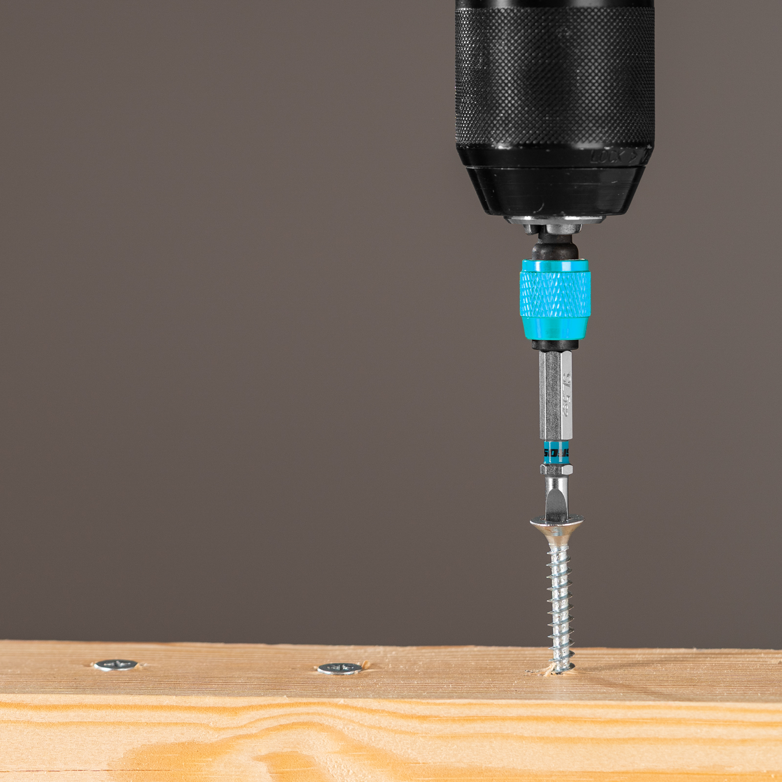 - Удобная эксплуатация — намагниченные шлицы облегчают работу и позволяют направлять шуруповерт с насаженным крепежом одной рукой, а другой придерживать закрепляемую деталь.