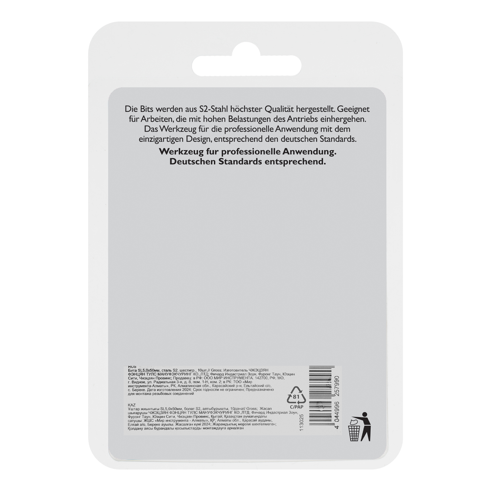 Биты SL5,0 х 50 мм Gross 113025 из стали S2, с шестигранным профилем, предназначены для шуруповертов и отверток-адаптеров с присоединительным шестигранником 1/4″. Биты со шлицами SL применяются для работы с винтами, саморезами и другим резьбовым крепежом. Удлиненные насадки 50 мм удобны для работы в ограниченном пространстве и труднодоступных местах.