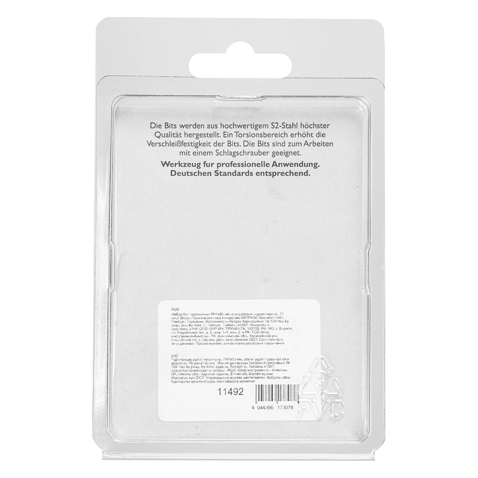 Набор торсионных бит PH1 x 50 мм Gross 11492, 10 шт., предназначен для монтажа и демонтажа резьбовых соединений с помощью ударного шуруповерта. Он незаменим в строительных, слесарных и монтажных работах, в автосервисах, при проведении ремонта в доме. Торсионная зона способна пружинить, за счет чего она частично амортизирует тангенциальный удар от шуруповерта. Такое решение позволяет равномерно распределить нагрузку по бите и избежать поломки шлица.