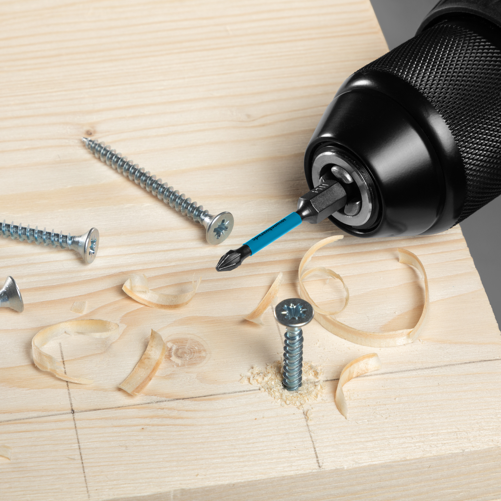 - Продуманная конструкция — торсионная зона позволяет работать ударным шуруповертом даже с особо твердыми поверхностями без риска поломки бит.