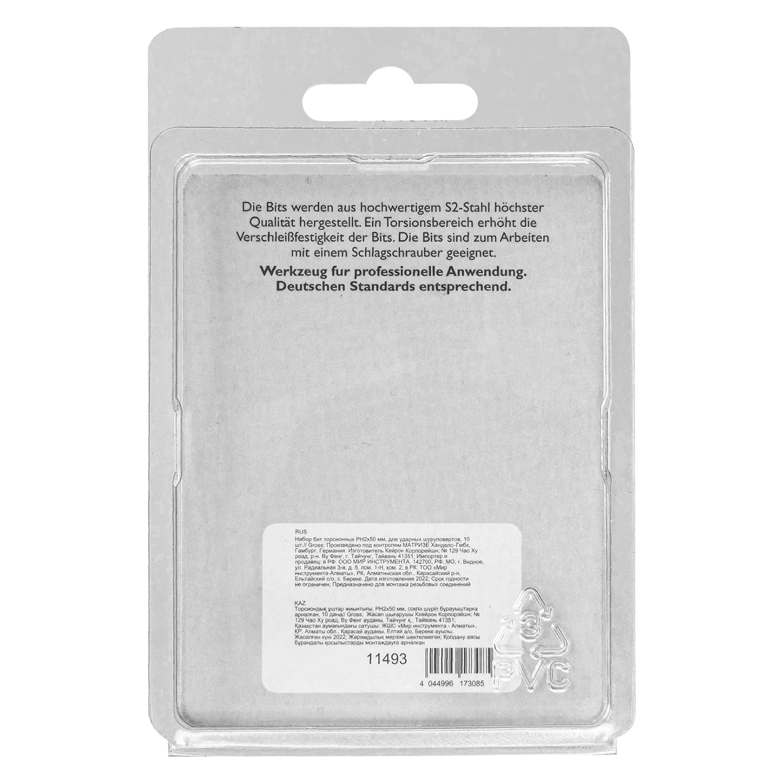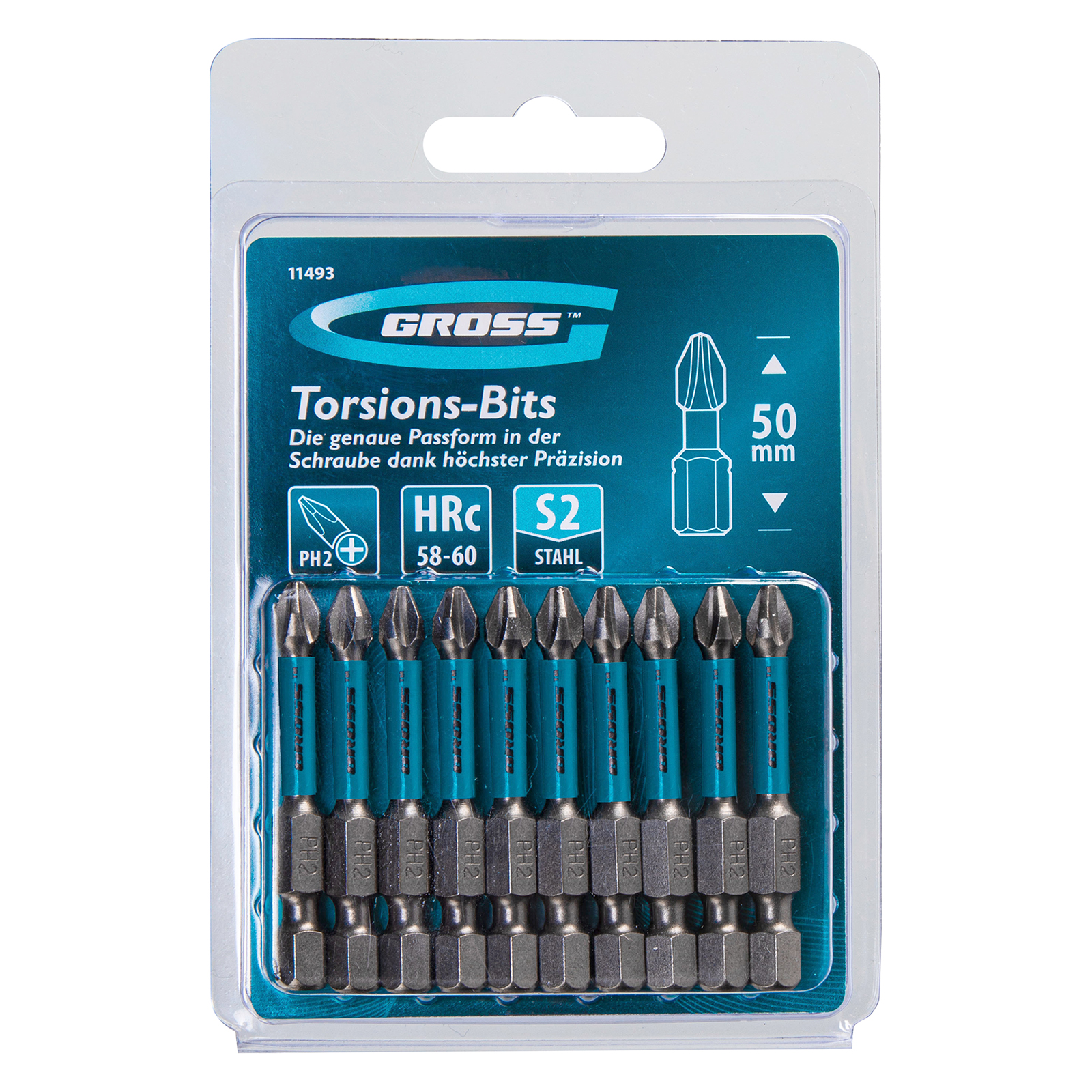 Набор торсионных бит PH2 x 50 мм Gross 11493, 10 шт., предназначен для монтажа и демонтажа резьбовых соединений с помощью ударного шуруповерта. Он незаменим в строительных, слесарных и монтажных работах, в автосервисах, при проведении ремонта в доме. Торсионная зона способна пружинить, за счет чего она частично амортизирует тангенциальный удар от шуруповерта. Такое решение позволяет равномерно распределить нагрузку по бите и избежать поломки шлица.
