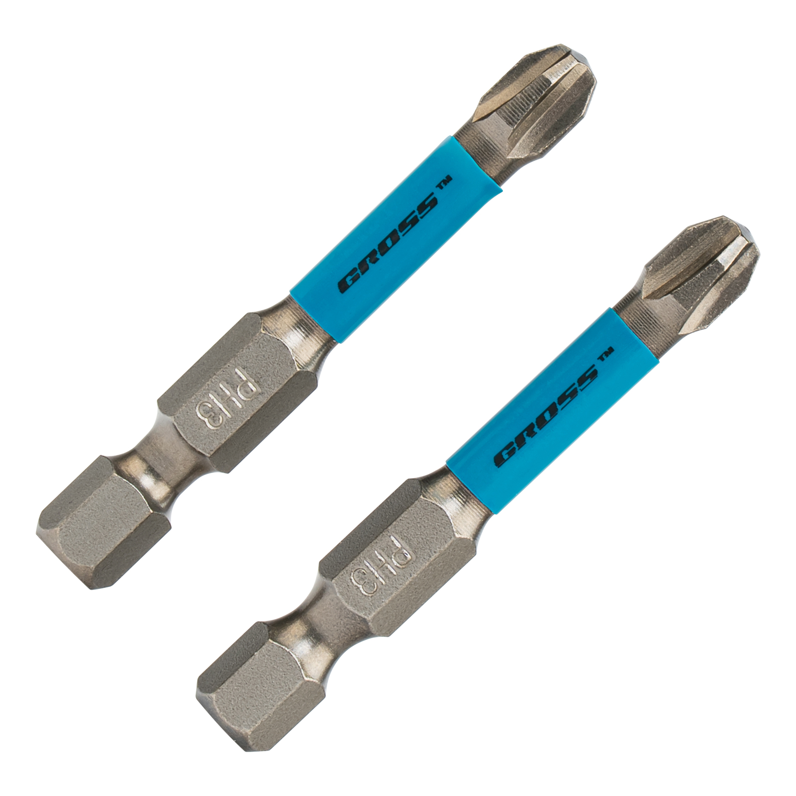 Набор торсионных бит PH3 x 50 мм Gross 11487, 2 шт., предназначен для монтажа и демонтажа резьбовых соединений с помощью ударного шуруповерта. Он незаменим в строительных, слесарных и монтажных работах, в автосервисах, при проведении ремонта в доме. Торсионная зона способна пружинить, за счет чего она частично амортизирует тангенциальный удар от шуруповерта. Такое решение позволяет равномерно распределить нагрузку по бите и избежать поломки шлица.