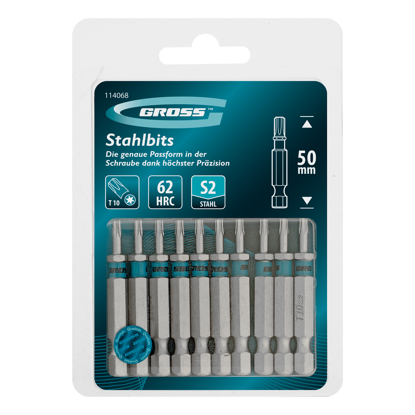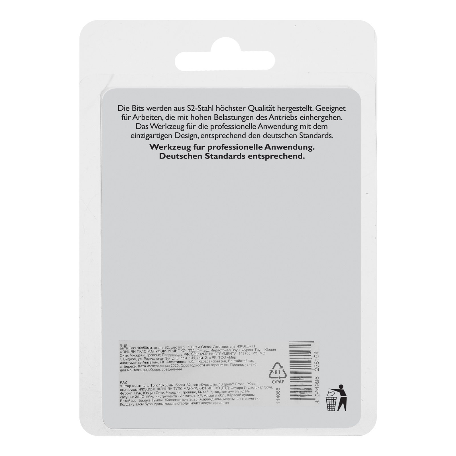 Биты TORX 10 х 50 мм Gross 114068 из стали S2, с шестигранным профилем, предназначены для шуруповертов и отверток-адаптеров с присоединительным шестигранником 1/4″. Применяются для для быстрого монтажа и демонтажа винтов при сборке бытовой техники и электроприборов. Удлиненные насадки 50 мм удобны для работы в ограниченном пространстве и труднодоступных местах. Благодаря конструктивной особенности лучи «звезды» надежно сцепляются с крепежом, нагрузка равномерно распределяется на все грани, что обеспечивает высокую точность работ.