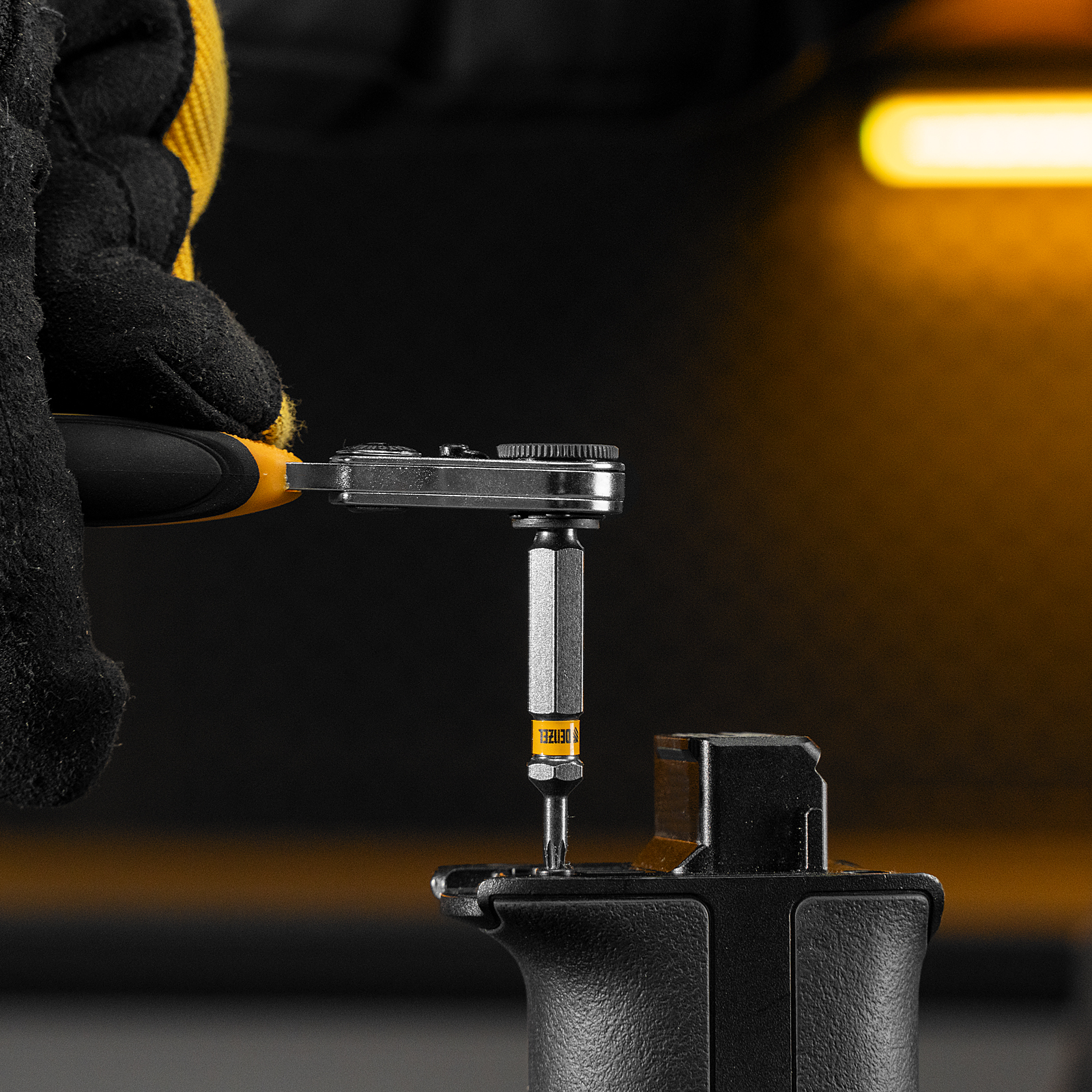 - Каждая бита защищена от подделок — об этом свидетельствует цветное кольцо с логотипом ТМ Denzel.