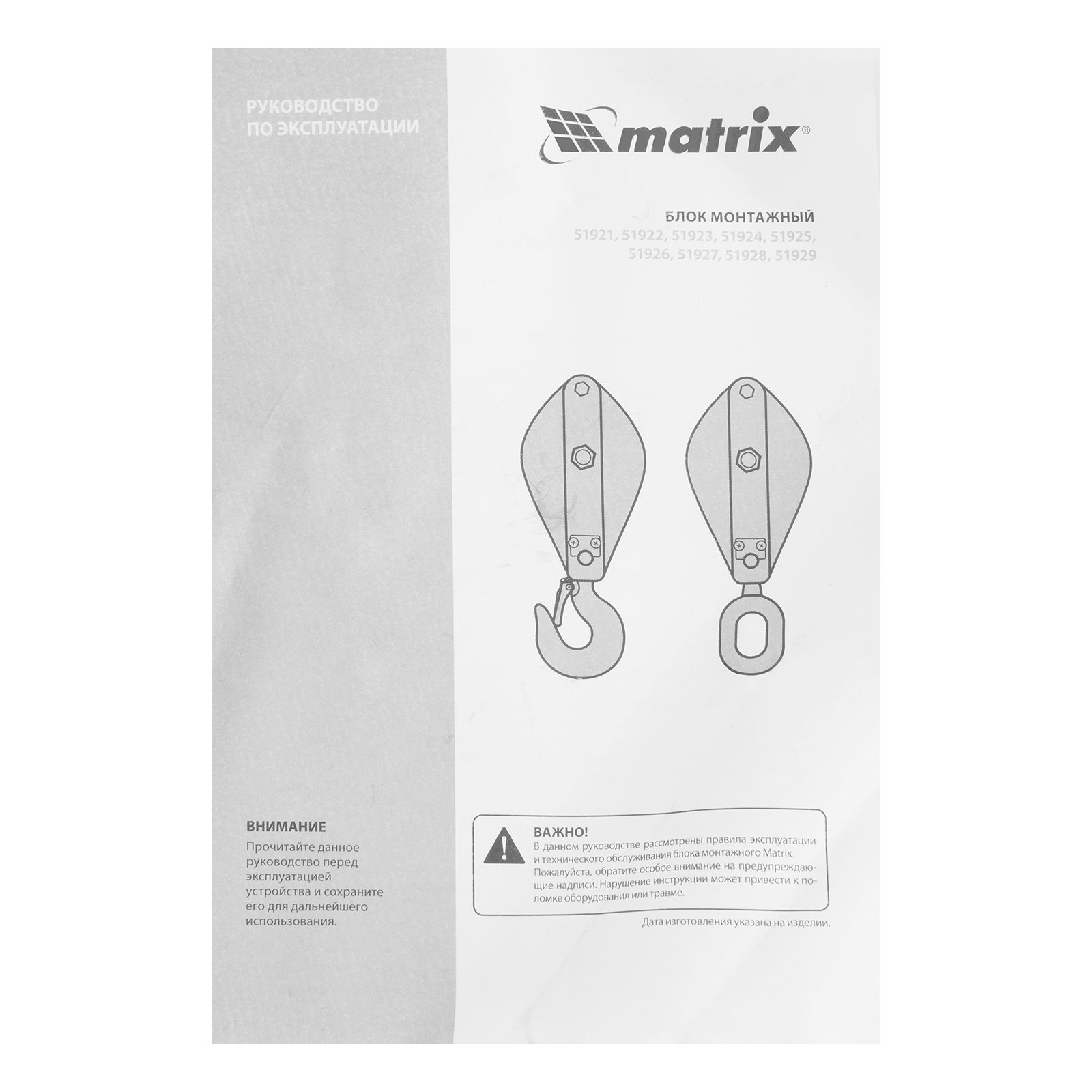 Монтажный блок Matrix 51922 с крюком, грузоподъемностью 1 т, расширяет функциональные возможности ручного и электрического грузоподъемного оборудования. Позволяет менять направление движения груза, а также увеличивает подъемную силу.