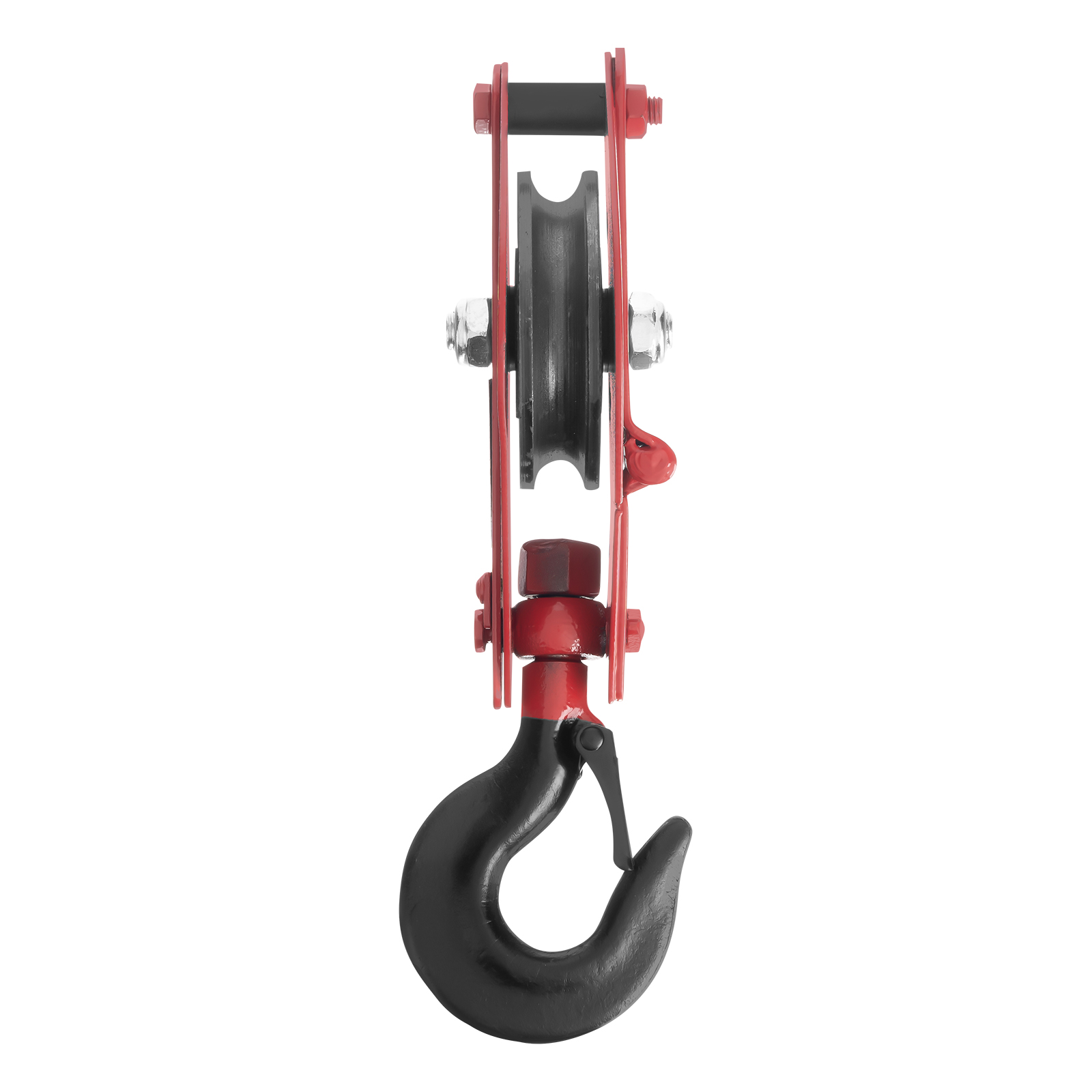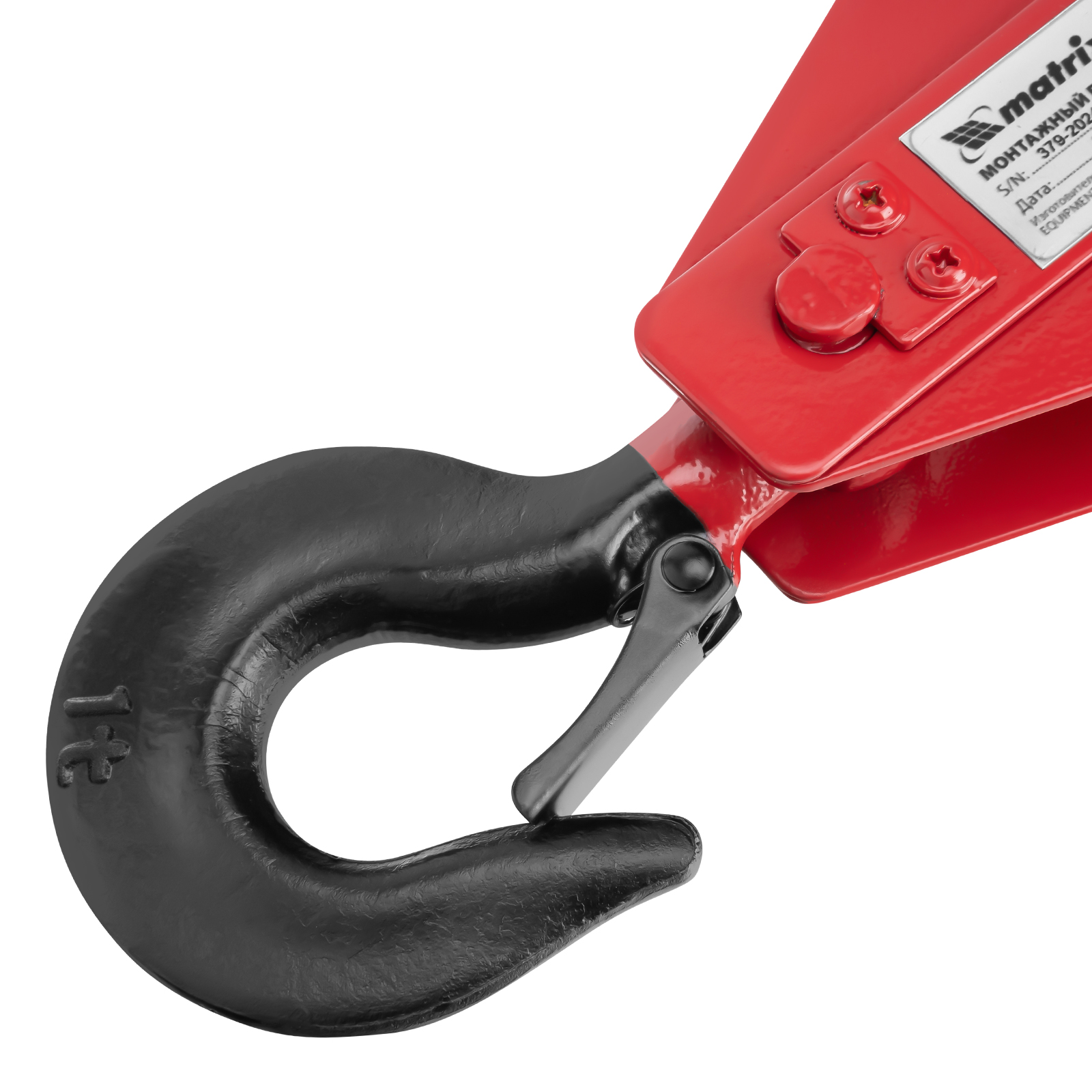 - Безопасная работа — кованая предохранительная защелка на крюке обеспечивает надежную фиксацию груза.