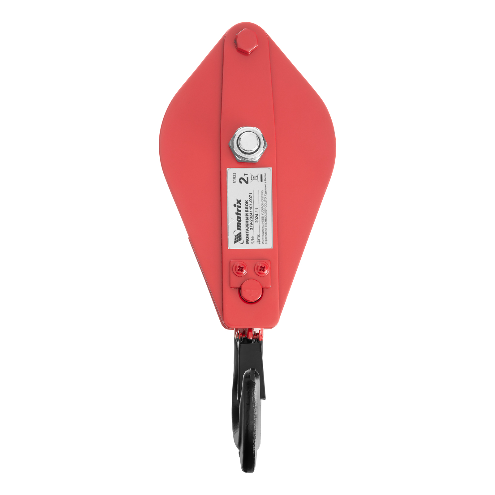 Монтажный блок Matrix 51923 с крюком, грузоподъемностью 2 т, расширяет функциональные возможности ручного и электрического грузоподъемного оборудования. Позволяет менять направление движения груза, а также увеличивает подъемную силу.