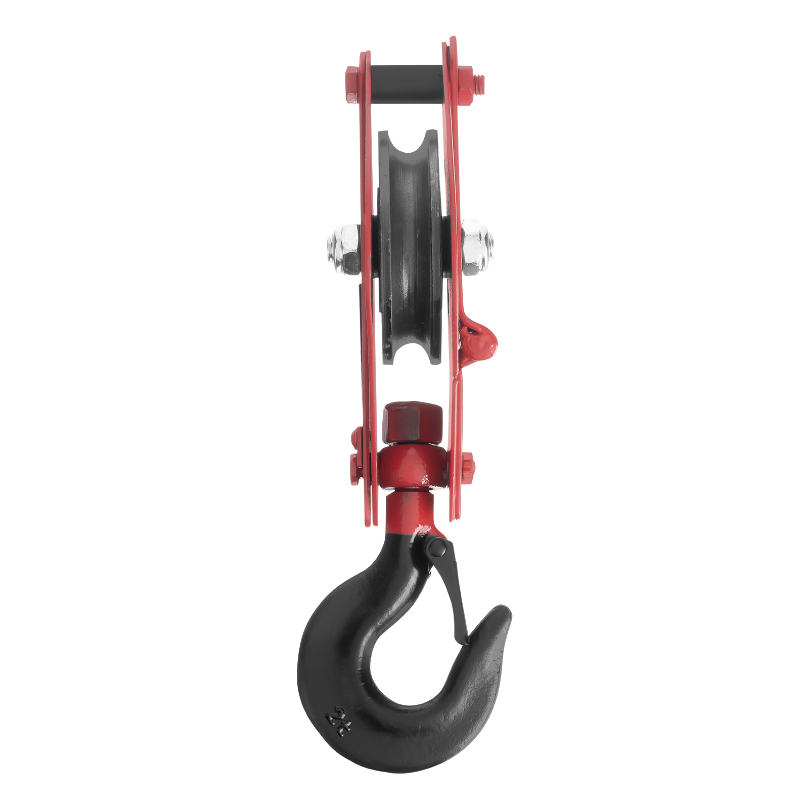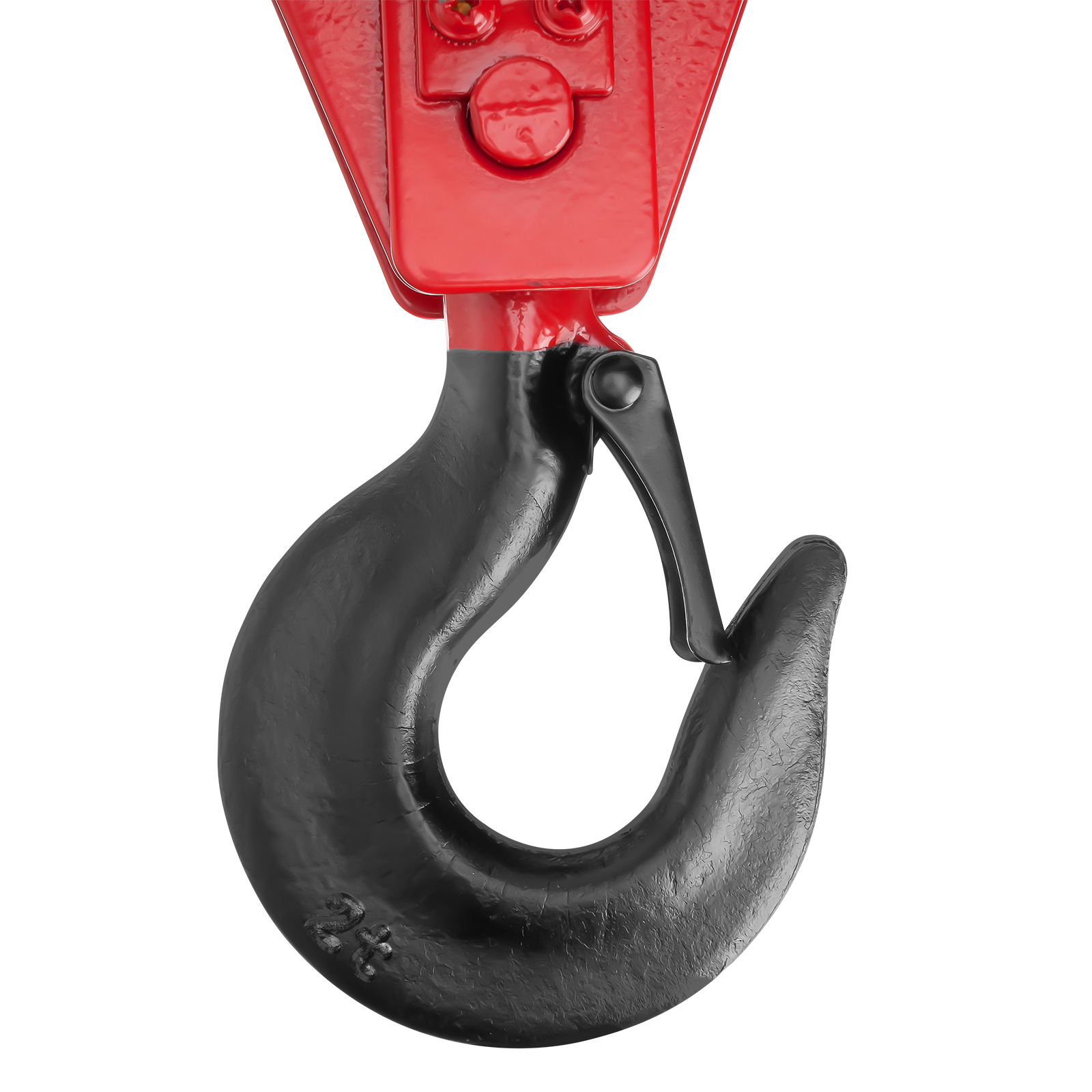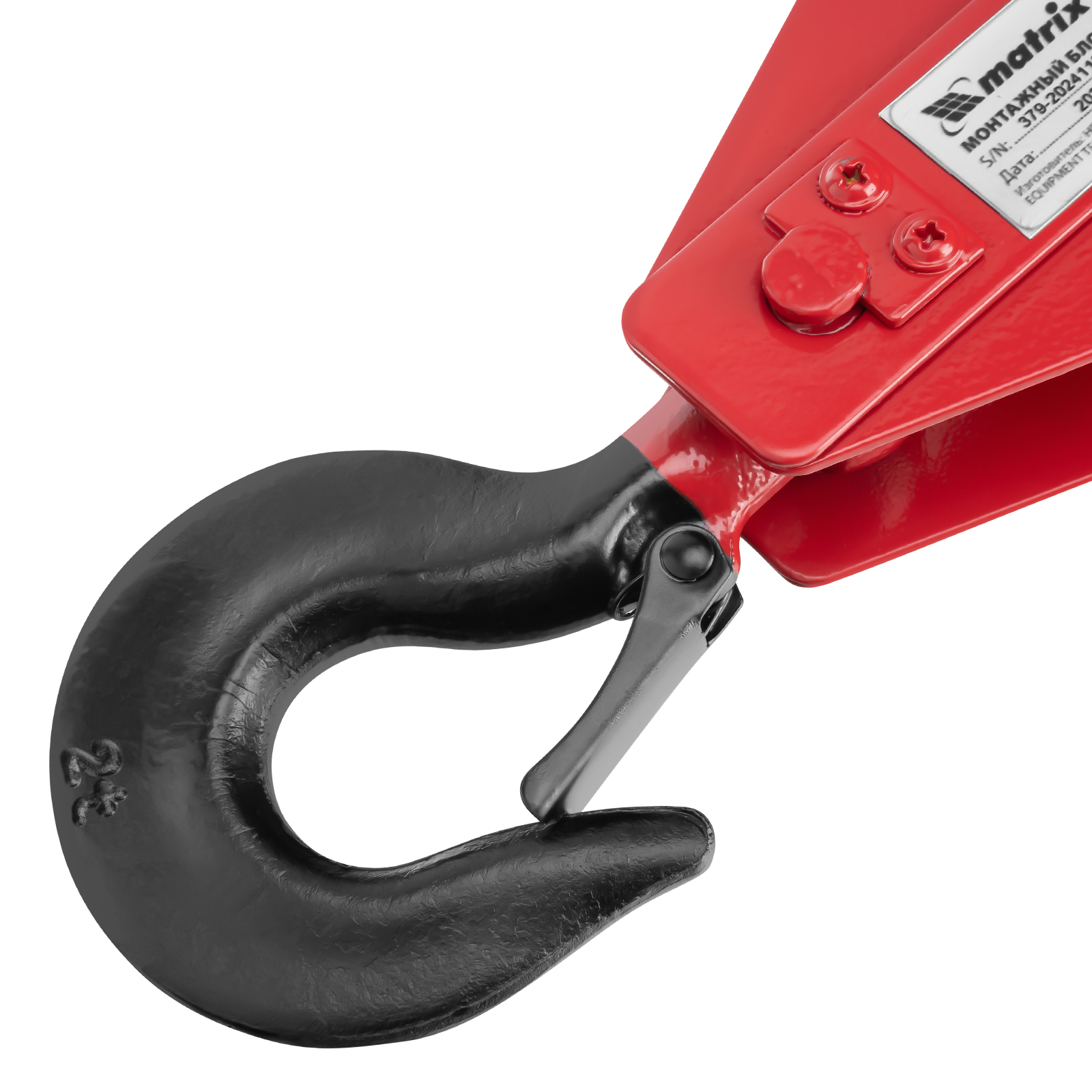 - Безопасная работа — кованая предохранительная защелка на крюке обеспечивает надежную фиксацию груза.