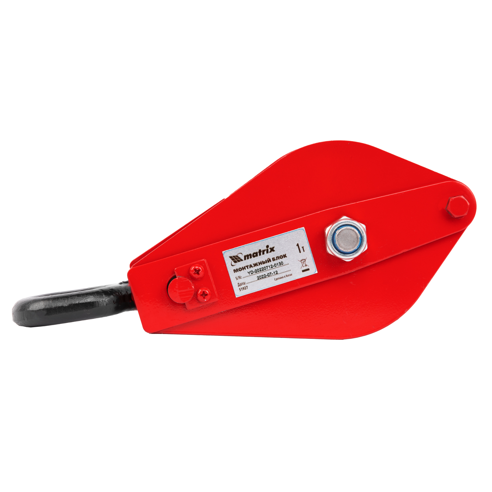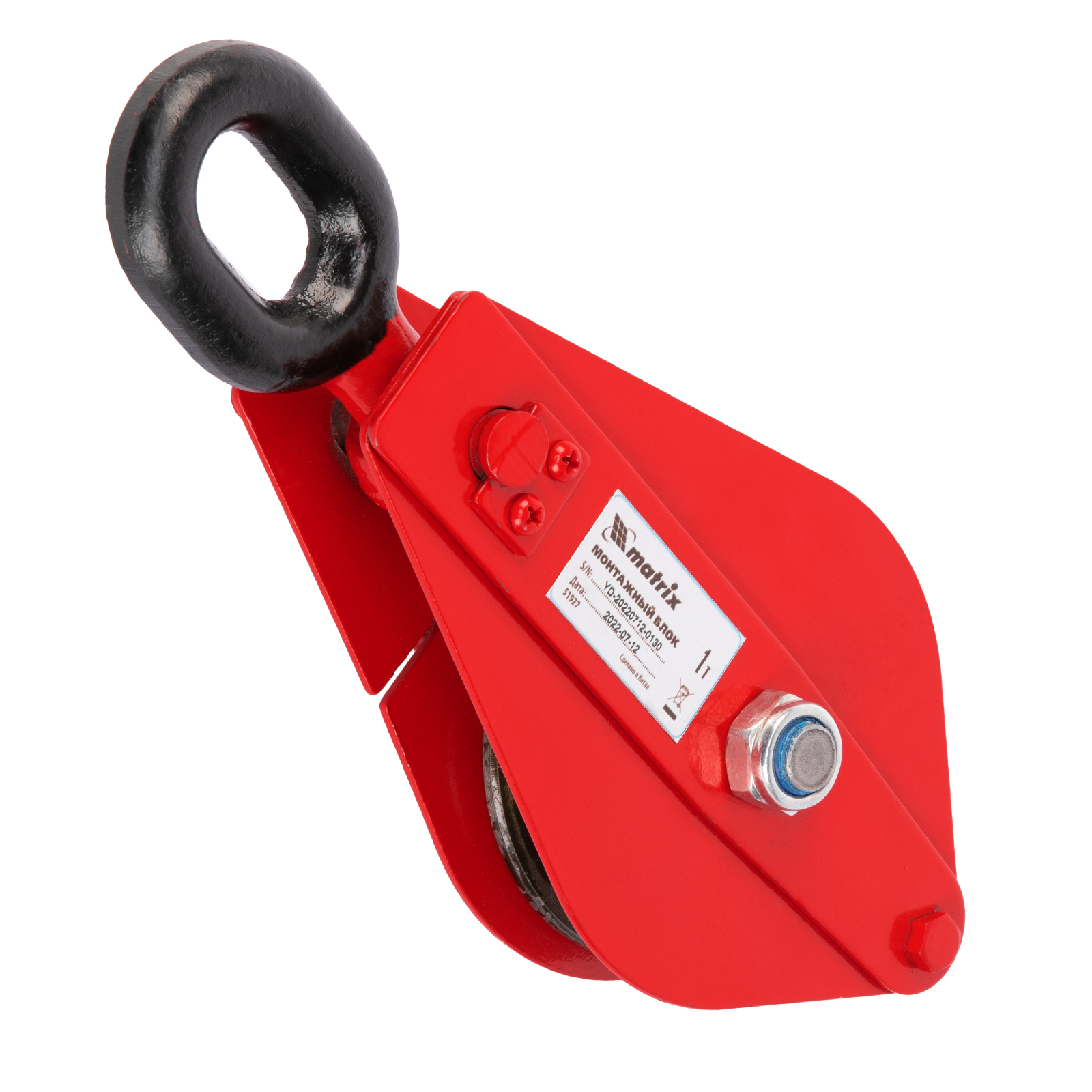 <p>Монтажный блок с проушиной Matrix 51926 грузоподъемностью 0,5 т расширяет функциональные возможности ручного и электрического грузоподъемного оборудования. Он позволяет менять направление движения груза, а также увеличивает подъемную силу.</p><h2>Преимущества</h2><ul><li>Откидная щека позволяет удобно установить трос или канат.</li></ul><ul><li>Блок пригодится при выполнении погрузочно-разгрузочных и монтажных работ на стройке, производстве и т.д.</li></ul>