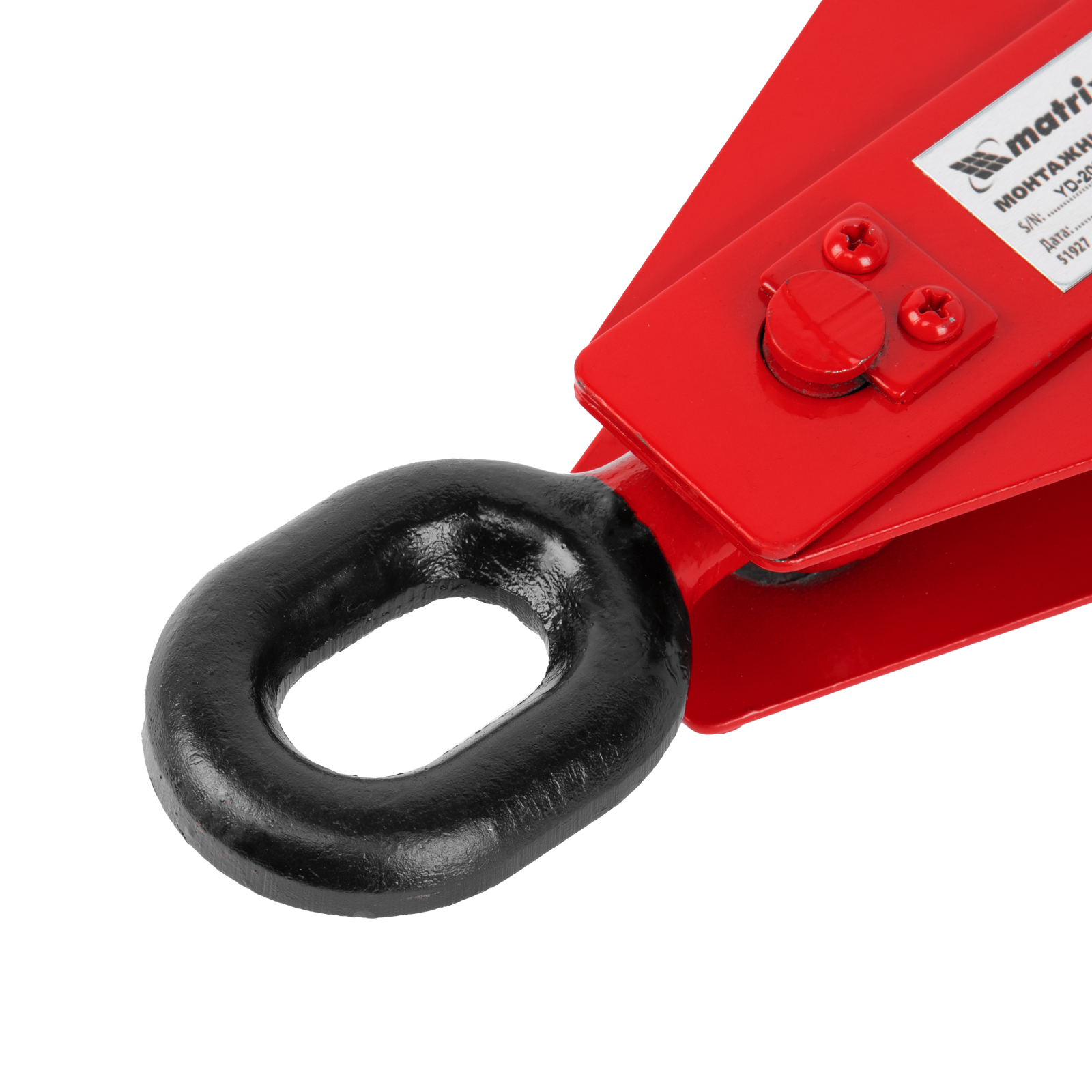 Монтажный блок с проушиной Matrix 51926 грузоподъемностью 0,5 т расширяет функциональные возможности ручного и электрического грузоподъемного оборудования. Он позволяет менять направление движения груза, а также увеличивает подъемную силу.