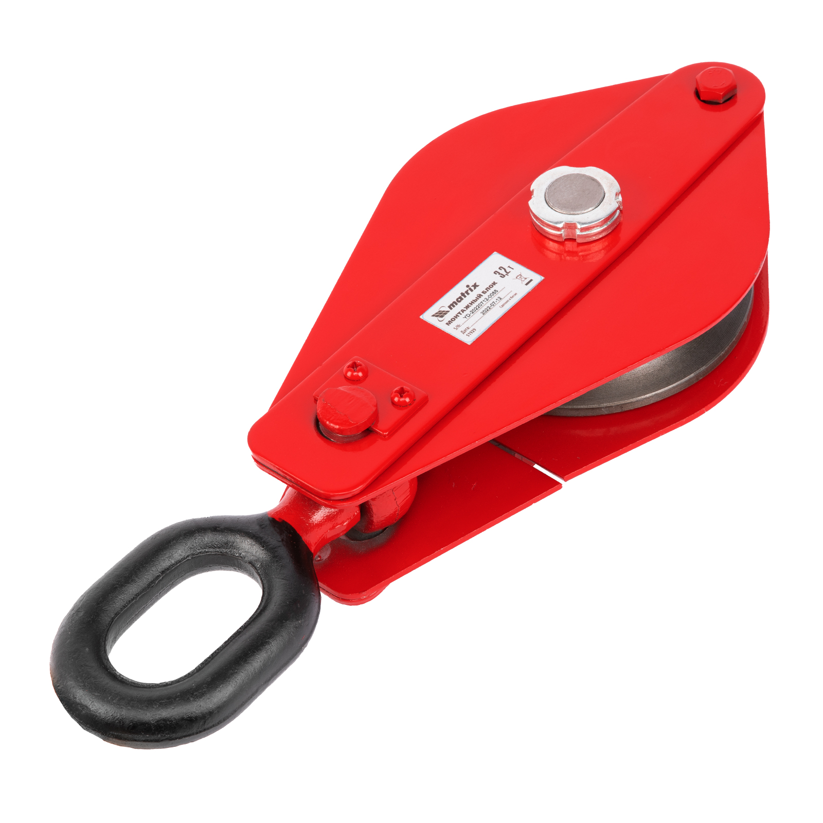 Монтажный блок с проушиной Matrix 51926 грузоподъемностью 0,5 т расширяет функциональные возможности ручного и электрического грузоподъемного оборудования. Он позволяет менять направление движения груза, а также увеличивает подъемную силу.