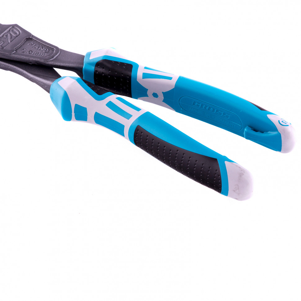 Усиленные бокорезы Gross 17585 длиной 200 мм, с трехкомпонентными рукоятками, предназначены для разрезания кабелей, проводов, проволоки, рояльных струн и т.д. Способны перекусывать не только алюминий, медь, пластмассу, но и более жесткие детали из стали диаметром до 4 мм. Встроенный рычажный механизм и смещенный непосредственно к режущим кромкам шарнир увеличивают усилие реза на 20%.
