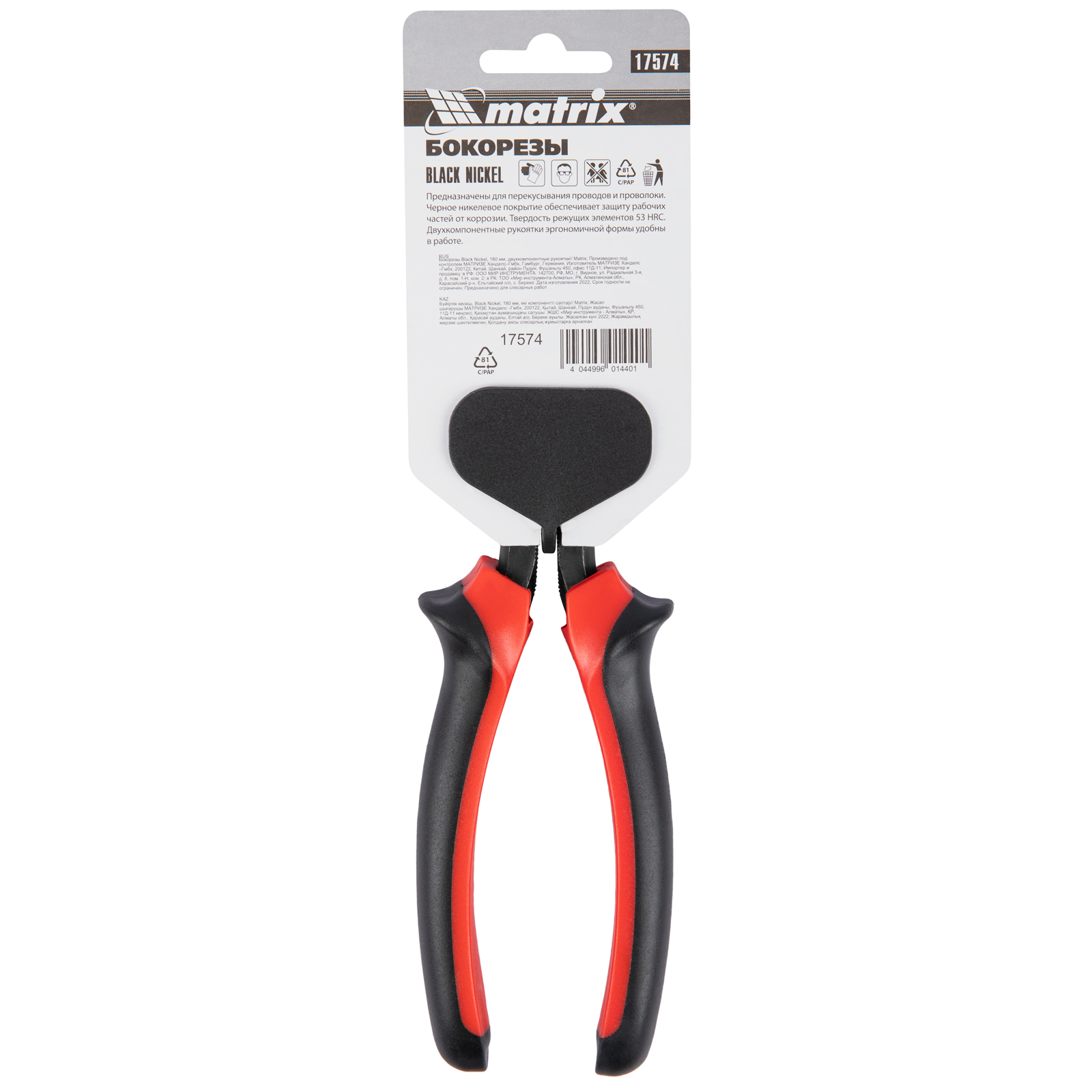 Бокорезы Matrix Black Nickel 17574 длиной 180 мм, с двухкомпонентными рукоятками, используются для разрезания проводов, кабелей, проволоки и перекусывания гвоздей. Пригодятся как начинающим мастерам, так и профессионалам при проведении монтажных и ремонтных работ.