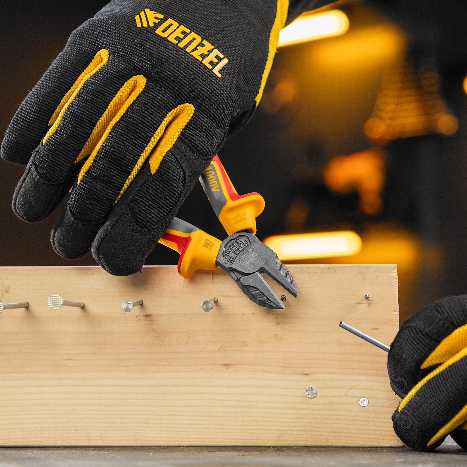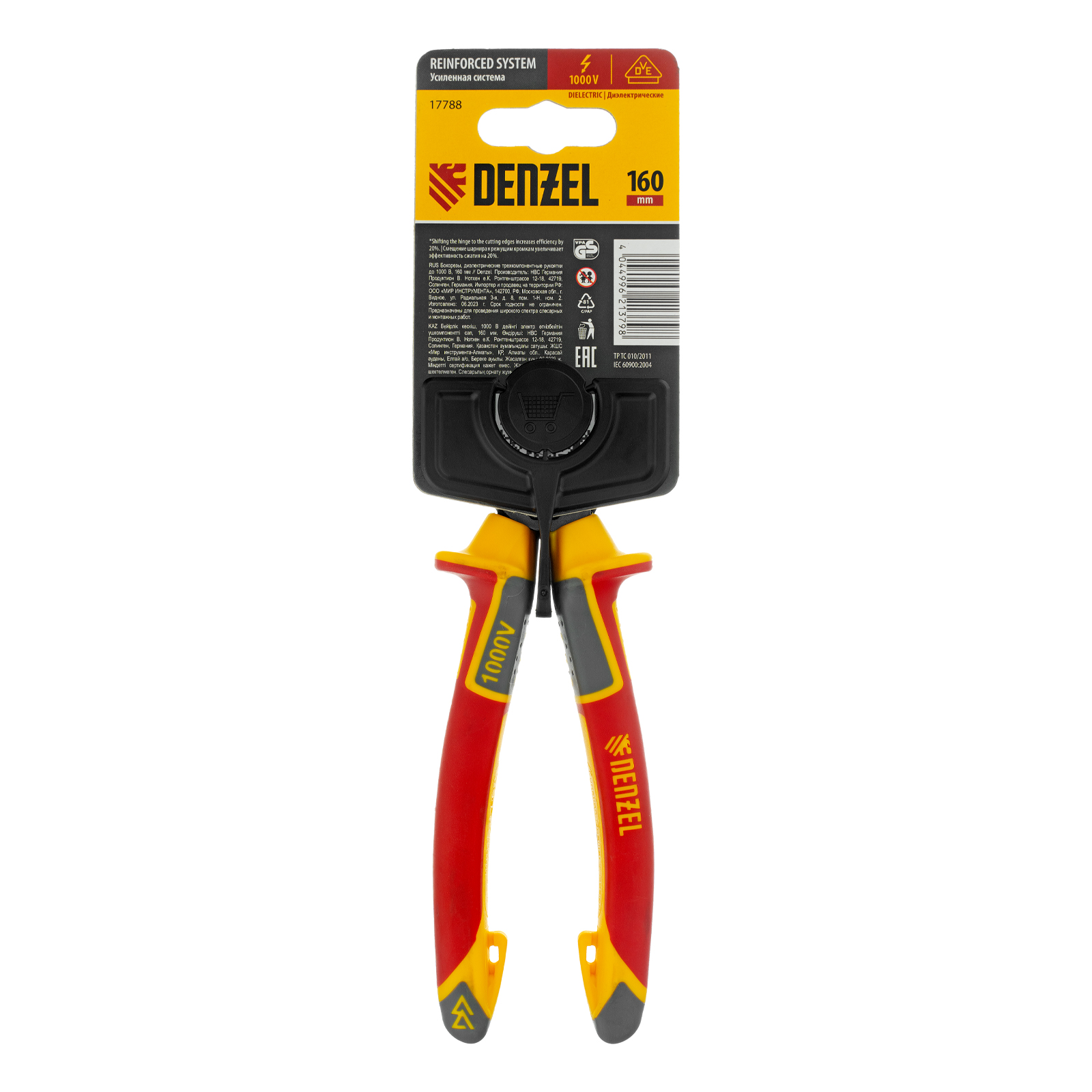 Бокорезы Denzel 17788 длиной 160 мм, с трехкомпонентными диэлектрическими рукоятками, рассчитанными на напряжение до 1000 В, предназначены для разрезания кабелей, проводов, проволоки, стержней из пластмассы и металла. Максимальный диаметр перерезаемой мягкой проволоки (алюминиевой, медной, с пределом прочности 220 Н/мм2) составляет 6 мм, проволоки средней жесткости и гвоздей (750 Н/мм2) — 3,5 мм, жесткой (1800 Н/мм2) — 2 мм. Бокорезы подходят для проведения электромонтажных работ. Инструмент эффективно справляется с поставленными задачами благодаря шарниру, смещенному к режущим кромкам и увеличивающему усилие реза на 20%.