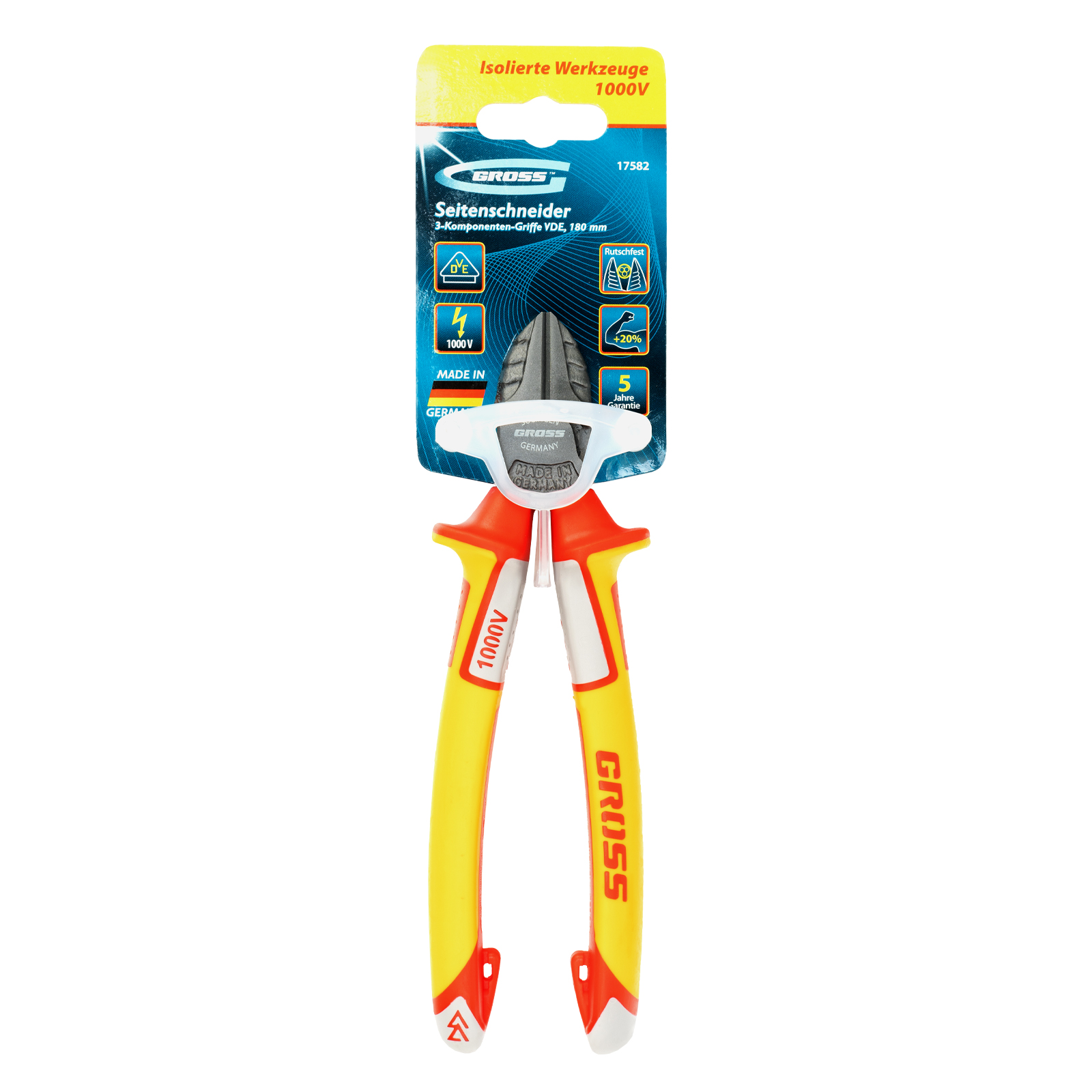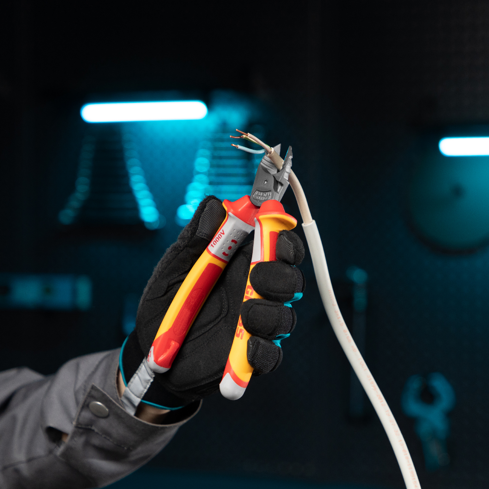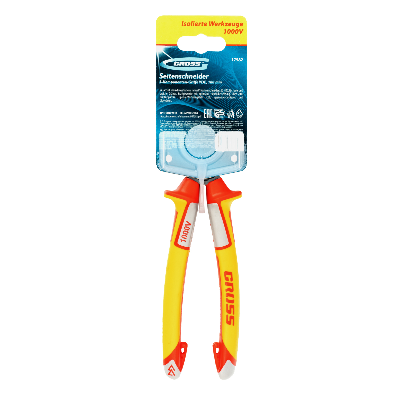 Бокорезы Gross 17582 длиной 180 мм, с трехкомпонентными диэлектрическими рукоятками, рассчитанными на напряжение до 1000 В, подходят для разрезания кабелей, проводов, проволоки, стержней из пластмассы и металла. Инструмент эффективно справляется с этими задачами благодаря шарниру, смещенному к режущим кромкам и увеличивающему усилие реза на 20%. Важно — перед началом электромонтажных работ необходимо отключить напряжение в сети!