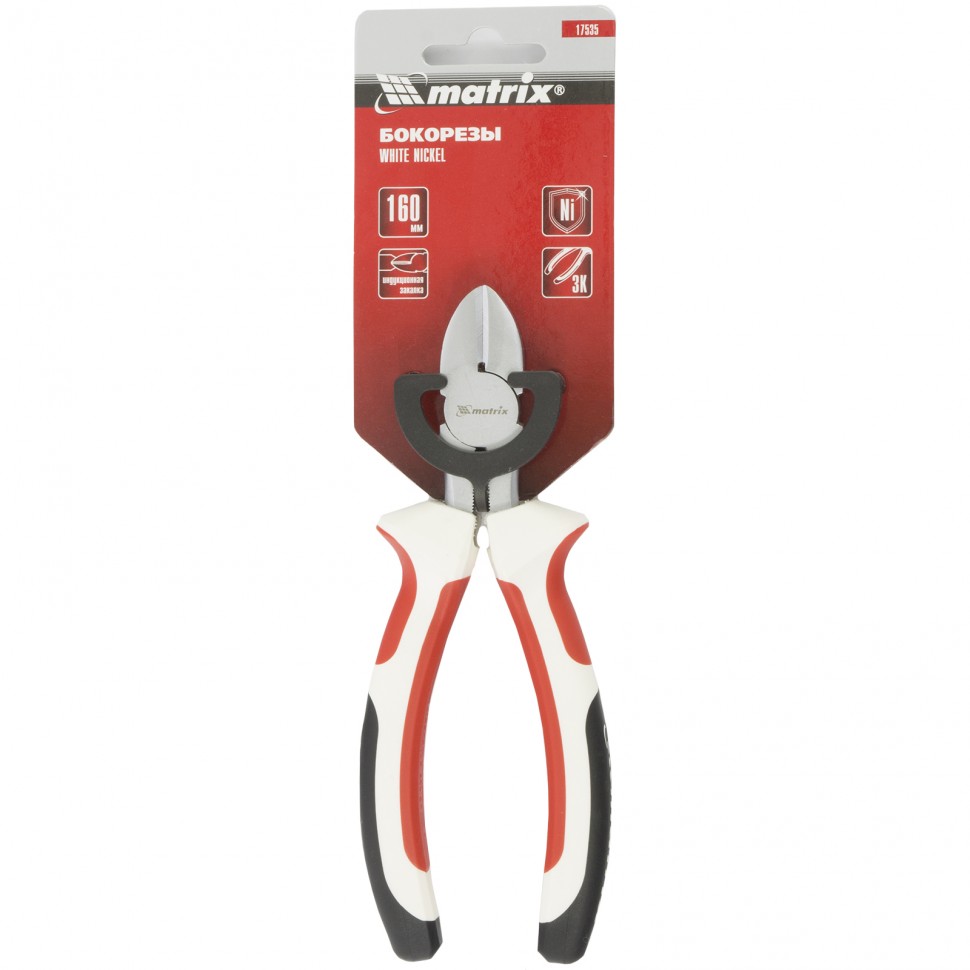 Никелированные бокорезы Matrix White Nickel 17535 длиной 160 мм, с трехкомпонентными рукоятками, предназначены для проведения слесарно-монтажных работ. Инструмент позволяет быстро и без особых усилий перерезать пластиковые и металлические детали, проволоку, а также перекусывать кабели и провода.