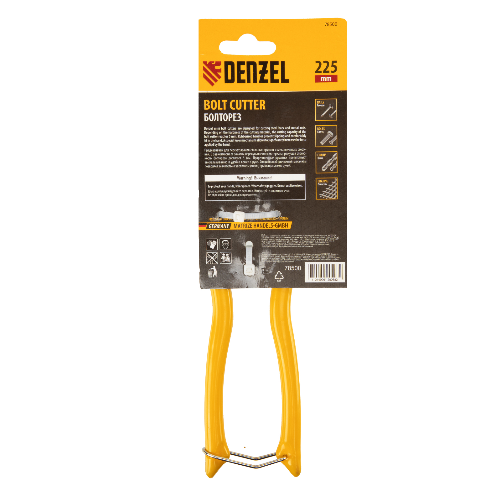 - Продуманная упаковка — болторез поставляется с подвесной картой, удобной для размещения на стенде.