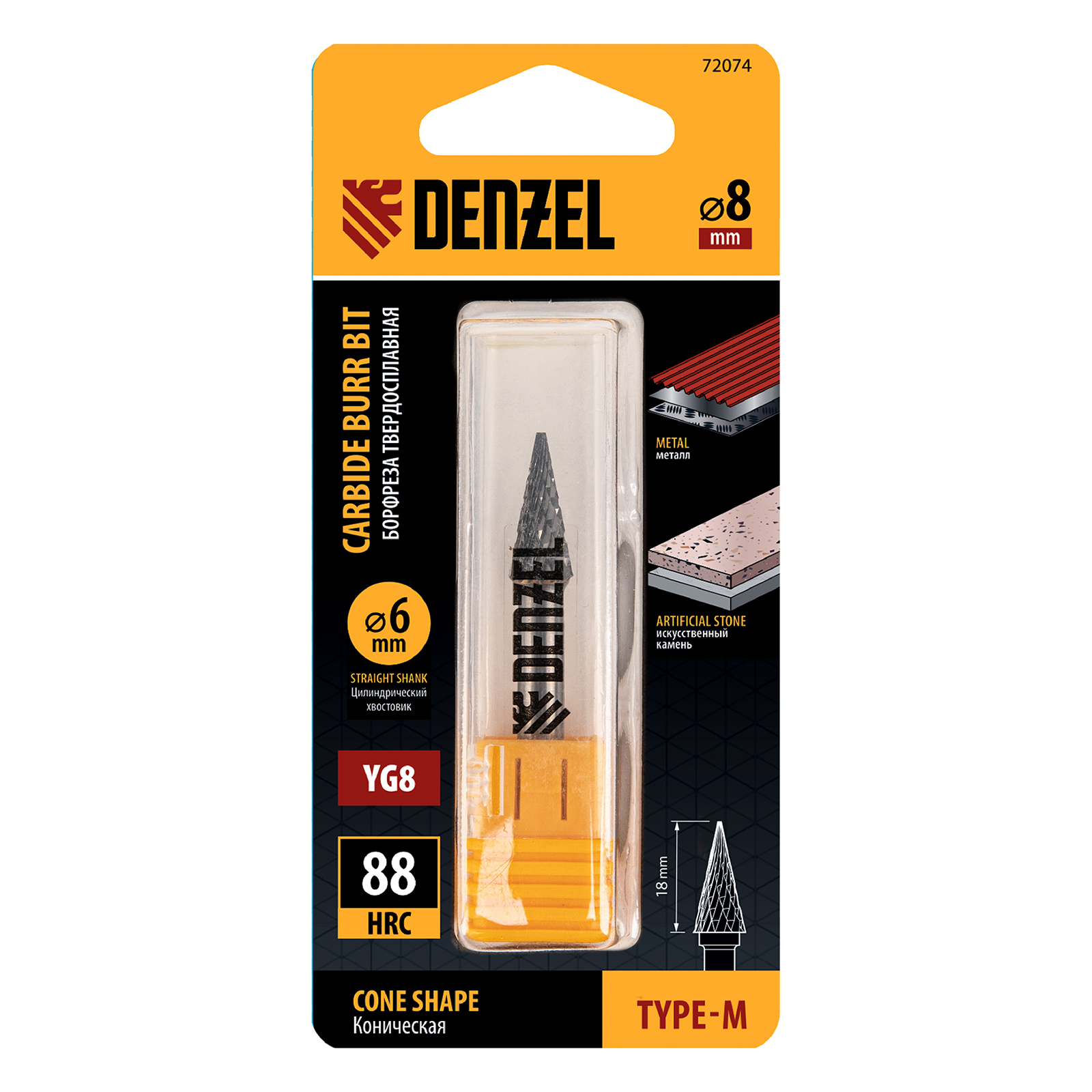 Твердосплавная борфреза по металлу Denzel 72074 с конической рабочей частью (тип M), диаметром 8 мм, — оснастка для дрели и прямошлифовальной машины. Позволяет снимать фаски и удалять заусенцы, идеальна для обработки поверхностей сложной формы, конических отверстий и пазов, а также выполнения точных работ. Подходит для шлифовки деталей из закаленной и нержавеющей стали, чугуна, бронзы, меди, латуни, титана, а также металлокерамики и искусственного камня.