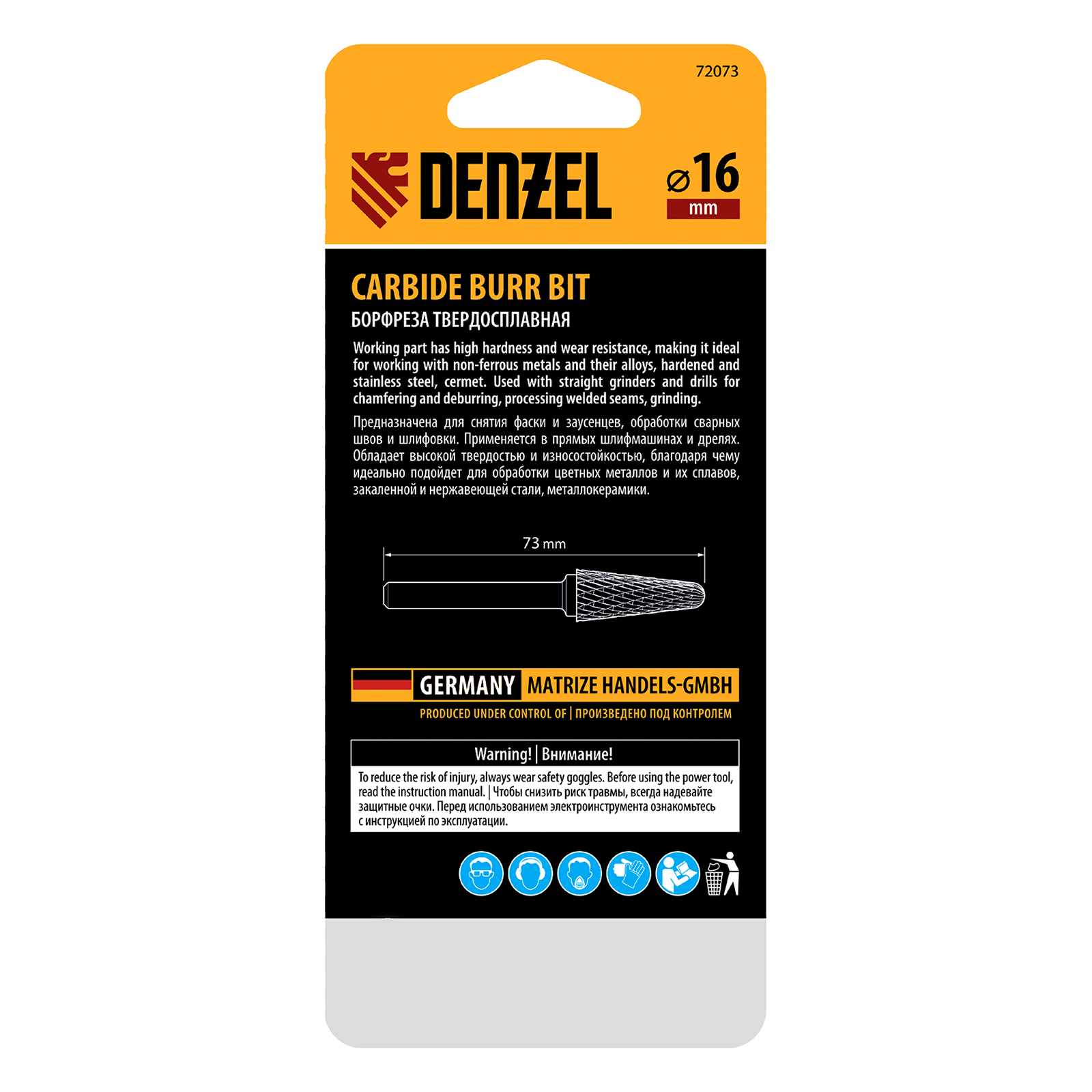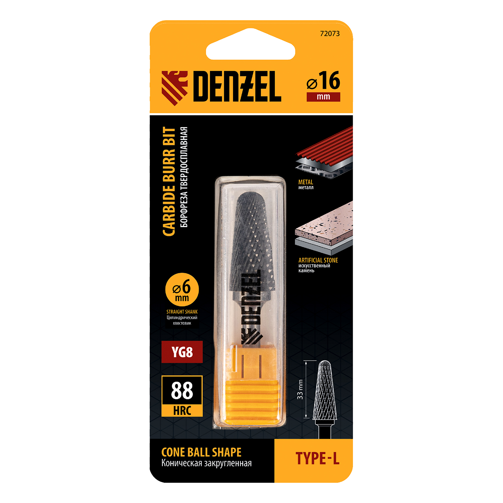 Твердосплавная борфреза Denzel 72073 с конической закругленной режущей частью (тип L), диаметром 16 мм, предназначена для выполнения работ по металлу. Используется для шлифовки, снятия фасок, удаления заусенцев, зачистки сварных швов. восстановления гравировки. Оптимальна для обработки труднодоступных мест. Оснастка устанавливается на дрель или прямошлифовальную машину, подходит для работы с закаленной и нержавеющей сталью, чугуном, бронзой, медью, латунью, титаном, а также металлокерамикой и искусственным камнем.