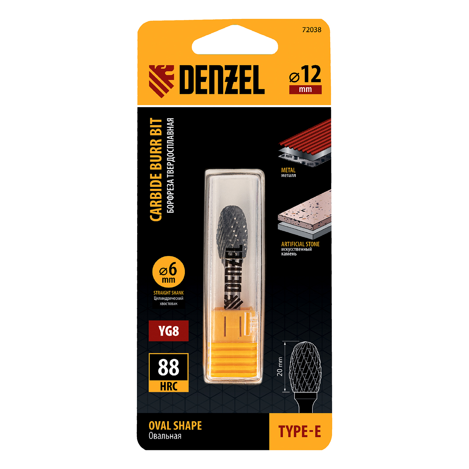 Твердосплавная борфреза по металлу Denzel 72038 с овальной режущей частью (тип E), диаметром 12 мм, предназначена для шлифовки стальных, бронзовых, медных, латунных, чугунных, титановых поверхностей. Также эффективна для обработки искусственного камня и металлокерамики. Овальная рабочая часть позволяет зачищать сварные швы, удалять заусенцы, снимать фаски, обрабатывать закругленные углы. С помощью борфрезы можно восстановить утратившую первоначальный вид гравировку. Режущая оснастка устанавливается на дрель или прямошлифовальную машину.