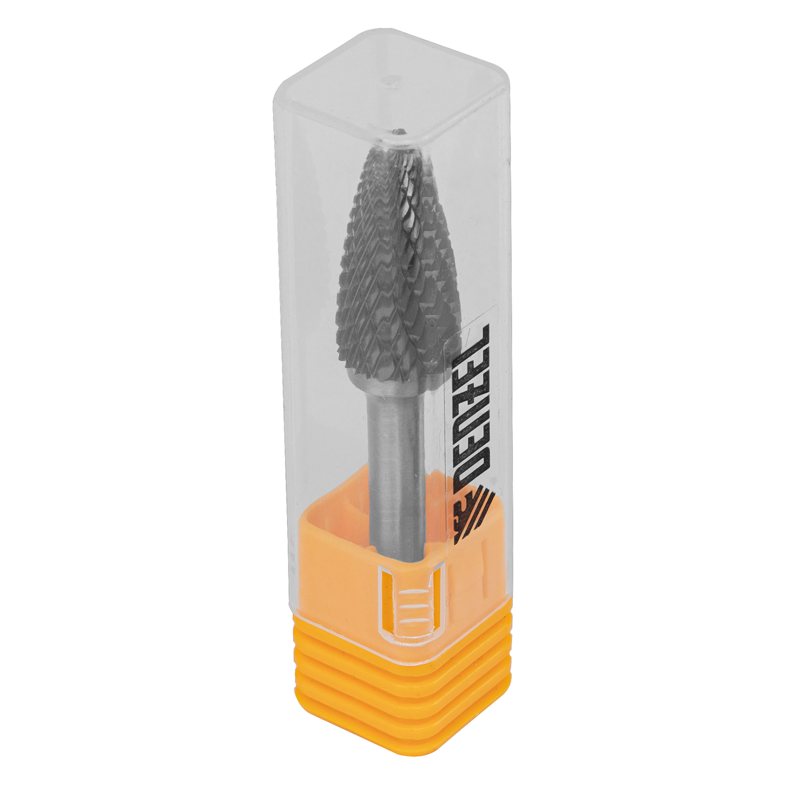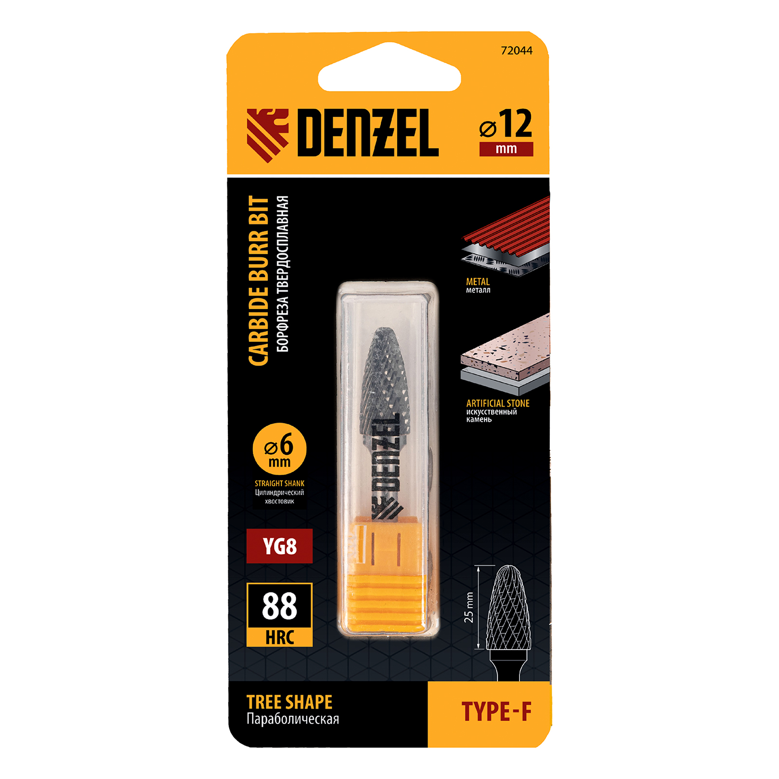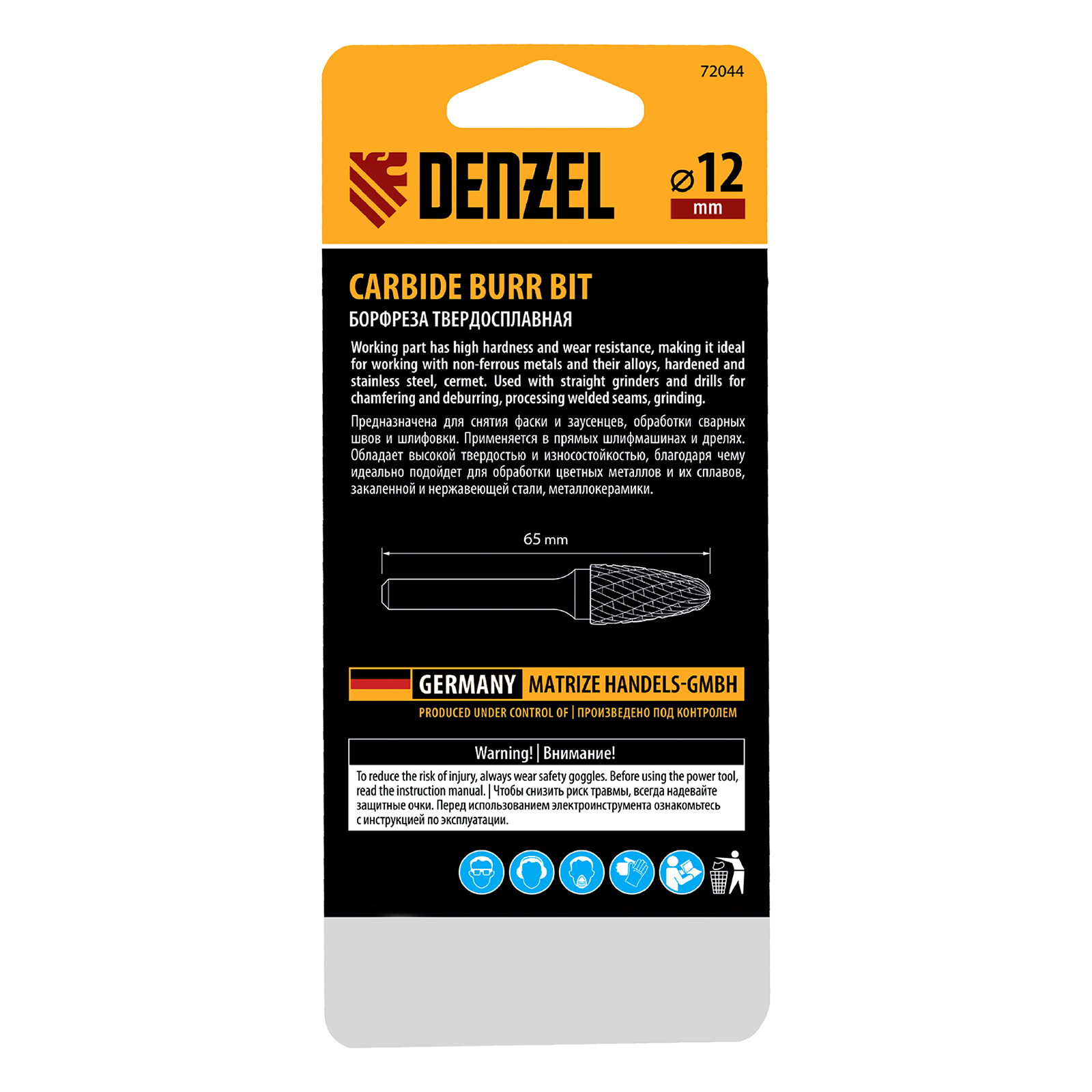 Твердосплавная борфреза Denzel 72044 с параболической режущей частью (тип F), диаметром 12 мм, устанавливается на дрель или прямошлифовальную машину и предназначена для шлифовальных работ по металлу. Позволяет обрабатывать закаленную и нержавеющую сталь, латунь, бронзу, медь, чугун, титан, а также металлокерамику и искусственный камень. Рабочая часть в форме параболы с закругленной головкой удобна для шлифовки формованных деталей с плавными контурами и обработки сопряжений. Также при помощи борфрезы можно разделывать кромки, снимать заусенцы, обрабатывать сварные швы. Подходит оснастка и для восстановления гравировки.