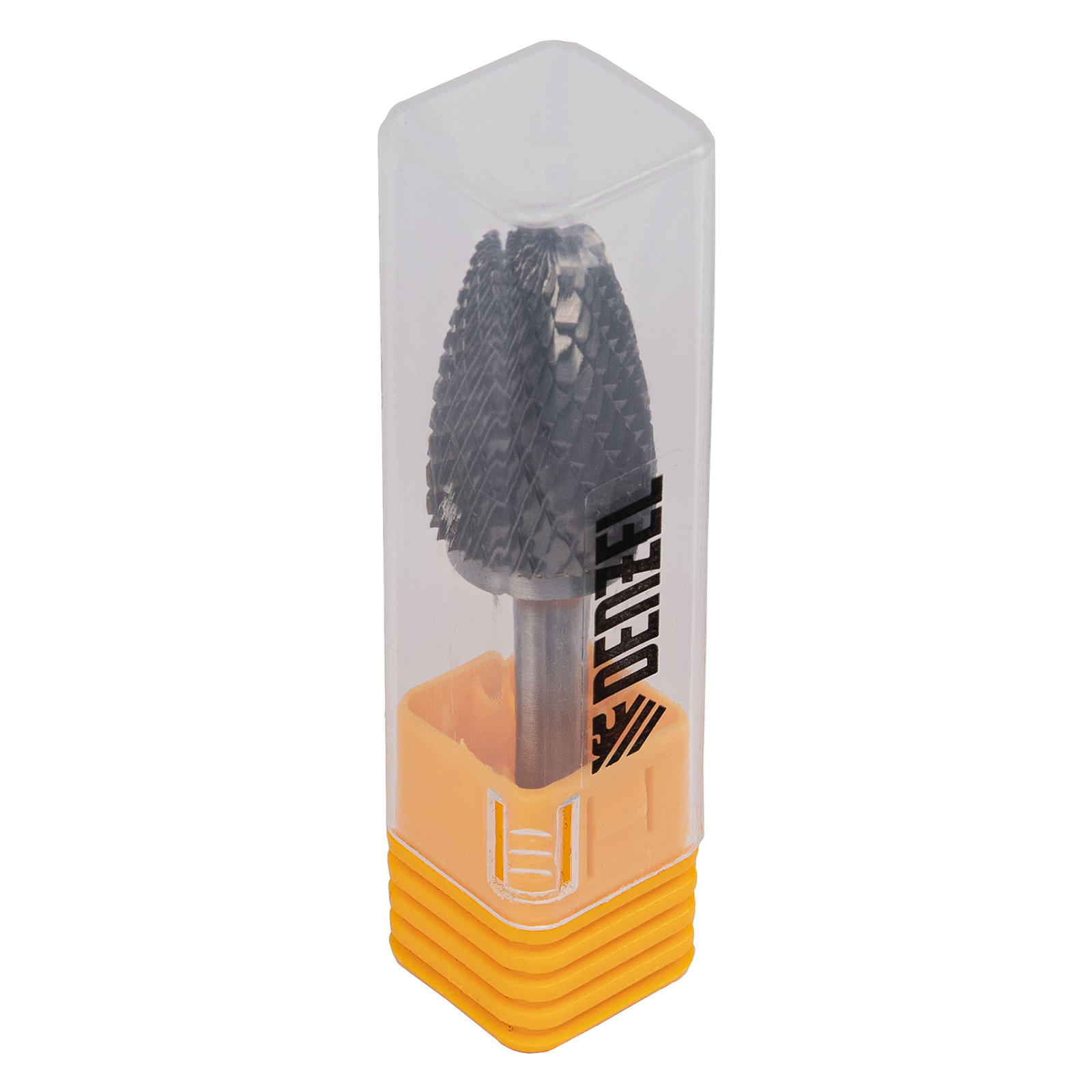 Твердосплавная борфреза Denzel 72046 с параболической режущей частью (тип F), диаметром 16 мм, устанавливается на дрель или прямошлифовальную машину и предназначена для шлифовальных работ по металлу. Позволяет обрабатывать закаленную и нержавеющую сталь, латунь, бронзу, медь, чугун, титан, а также металлокерамику и искусственный камень. Рабочая часть в форме параболы с закругленной головкой удобна для шлифовки формованных деталей с плавными контурами и обработки сопряжений. Также при помощи борфрезы можно разделывать кромки, снимать заусенцы, обрабатывать сварные швы. Подходит оснастка и для восстановления гравировки.