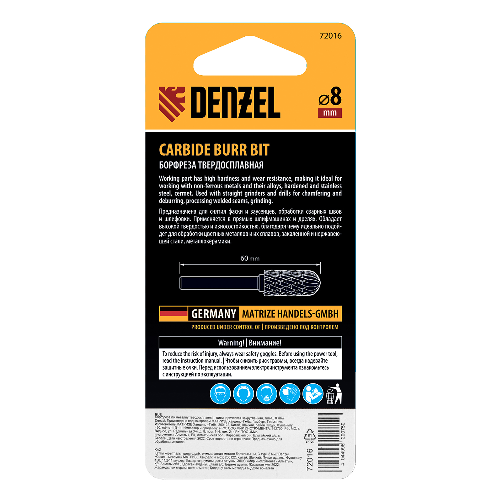 Твердосплавная борфреза Denzel 72016 с цилиндрической закругленной рабочей частью (тип C), диаметром 8 мм, предназначена для шлифовальных работ по металлу: закаленной и нержавеющей стали, латуни, чугуну, бронзе, титану, меди. Также используется для обработки искусственного камня и металлокерамики. Борфреза позволяет зачищать сварные швы, удалять заусенцы и снимать фаски. Форма рабочей части оптимальна для обработки радиусных пазов, поверхностей с плавными изгибами. Также с помощью борфрезы можно быстро и эффективно восстановить гравировку. Оснастка устанавливается на дрель или прямошлифовальную машину.