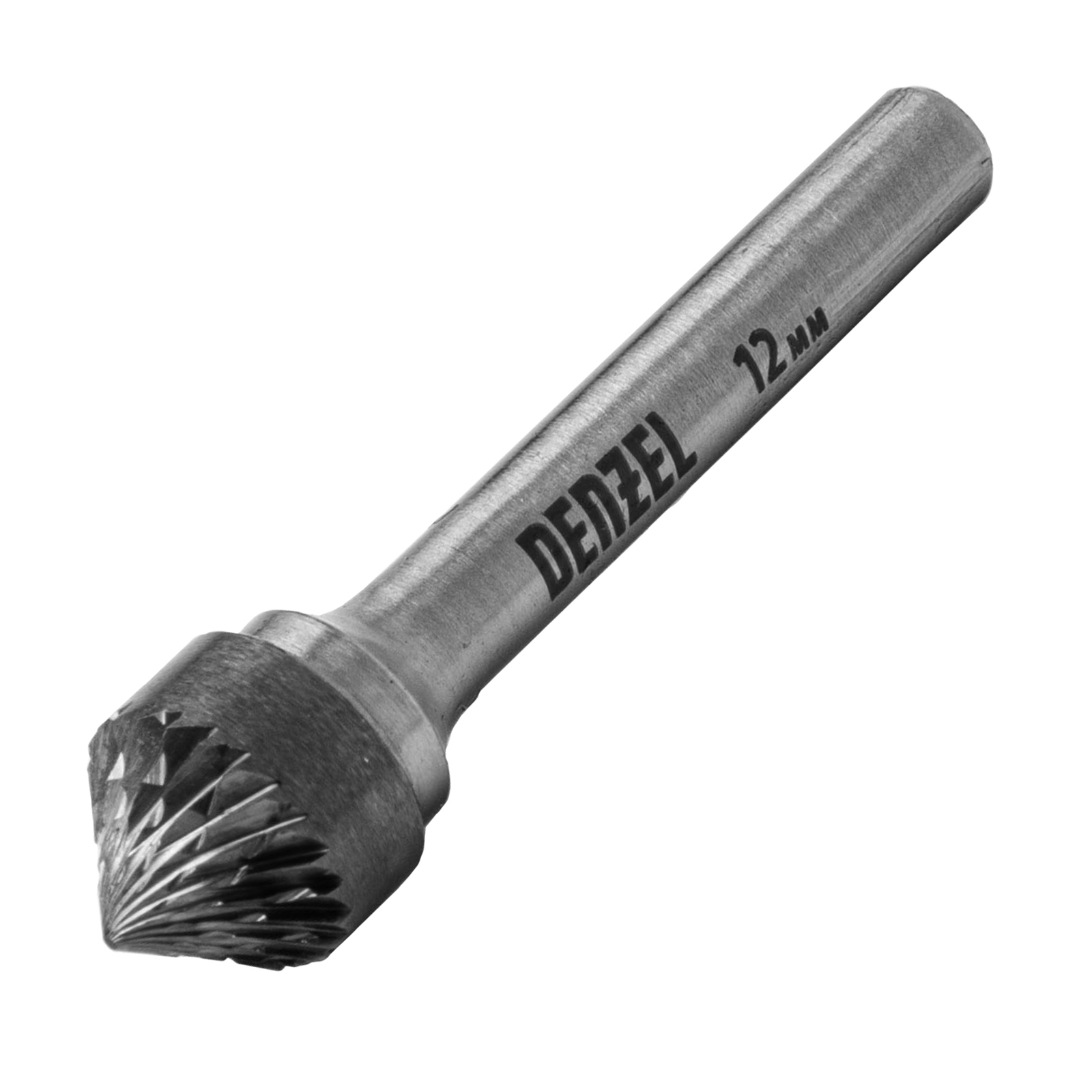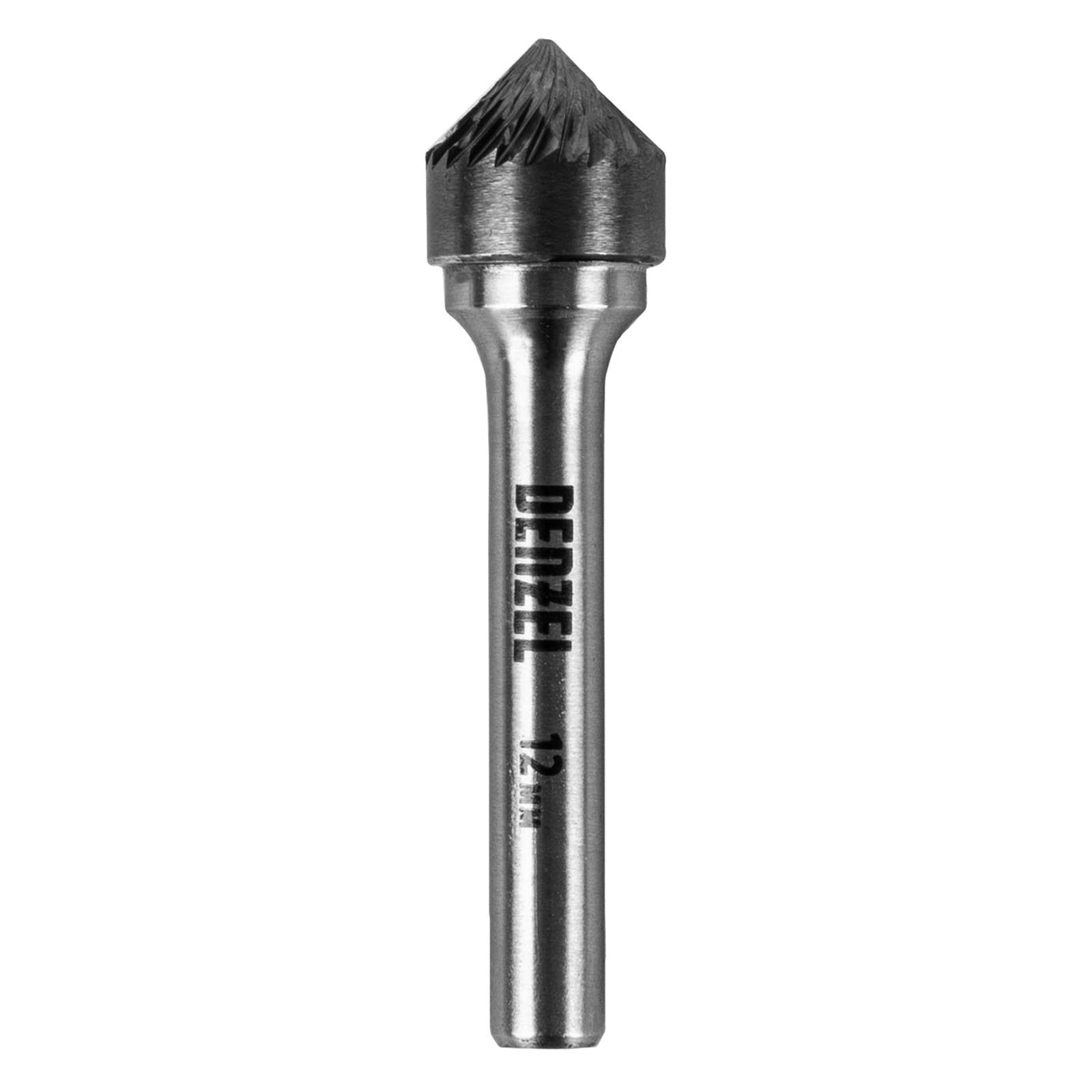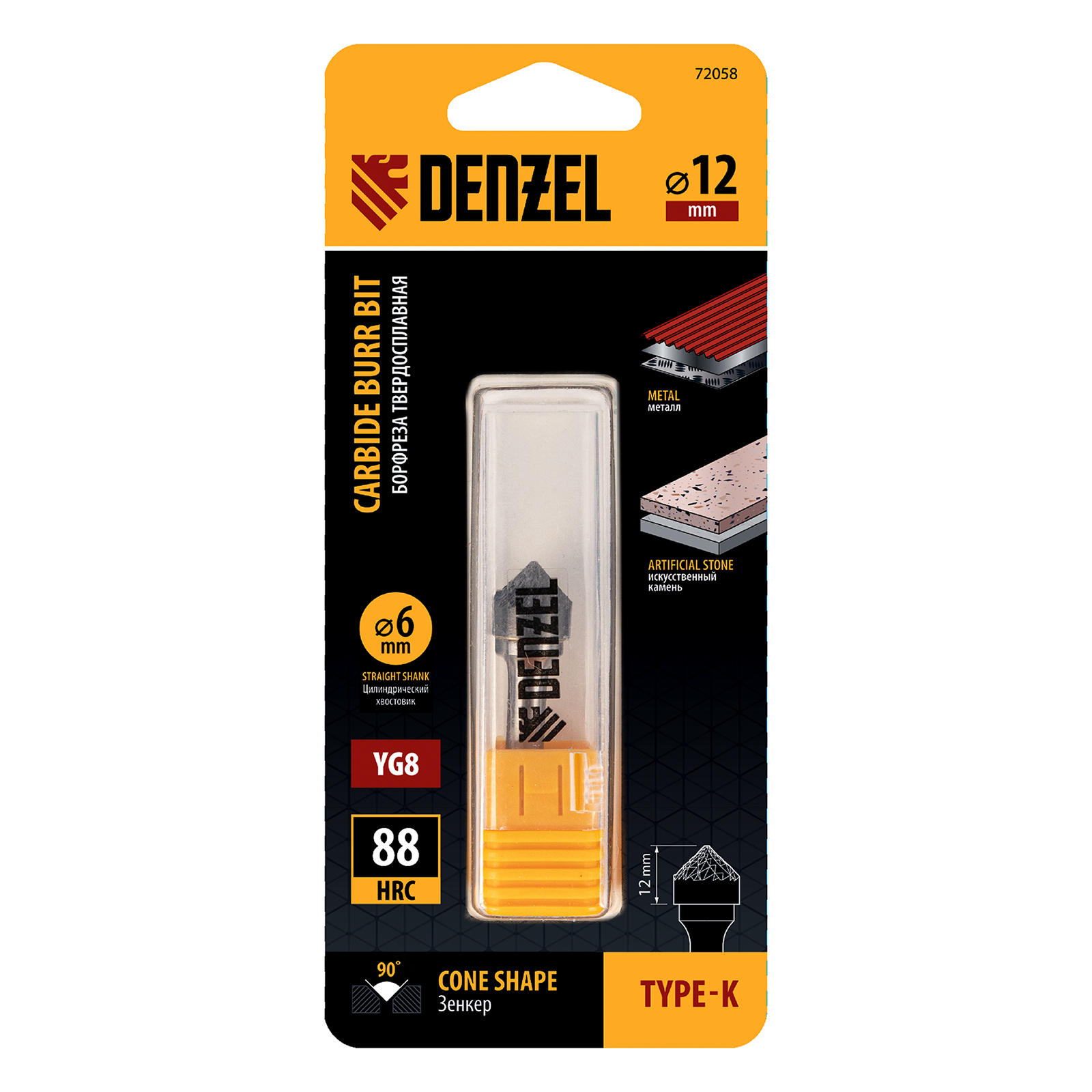 <p>Твердосплавная борфреза по металлу Denzel 72058 с рабочей частью-зенкером с вершиной 90° (тип K), диаметром 12 мм, устанавливается на дрель или прямошлифовальную машину. Используется для обработки закаленной и нержавеющей стали, латуни, бронзы, меди, чугуна, титана, а также металлокерамики и искусственного камня. Оптимальна для снятия фасок и заусенцев, обработки кромок, угловых пазов, краев отверстий.</p><h2>Преимущества</h2><ul><li>Эффективная работа с особо прочными материалами — рабочая часть изготовлена из сплава ВК8 твердостью 69-72 HRC.</li><li>Высокая производительность — специальные перекрестные насечки-стружколомы обеспечивают эффективное удаление продуктов обработки.</li><li>Универсальность — цилиндрический хвостовик диаметром 6 мм совместим с большинством патронов инструментов.</li><li>Удобное хранение и транспортировка — борфреза поставляется в практичном пластиковом кейсе.</li></ul>