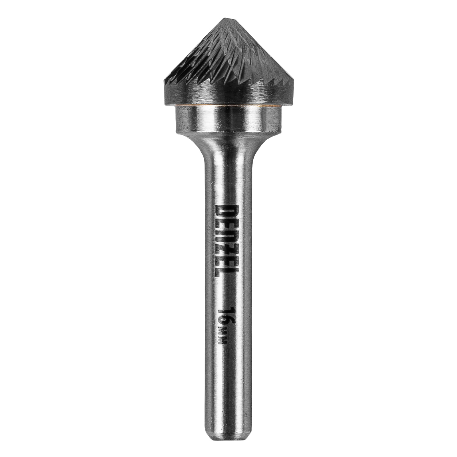 Твердосплавная борфреза по металлу Denzel 72059 с рабочей частью-зенкером с вершиной 90° (тип K), диаметром 16 мм, устанавливается на дрель или прямошлифовальную машину. Используется для обработки закаленной и нержавеющей стали, латуни, бронзы, меди, чугуна, титана, а также металлокерамики и искусственного камня. Оптимальна для снятия фасок и заусенцев, обработки кромок, угловых пазов, краев отверстий.