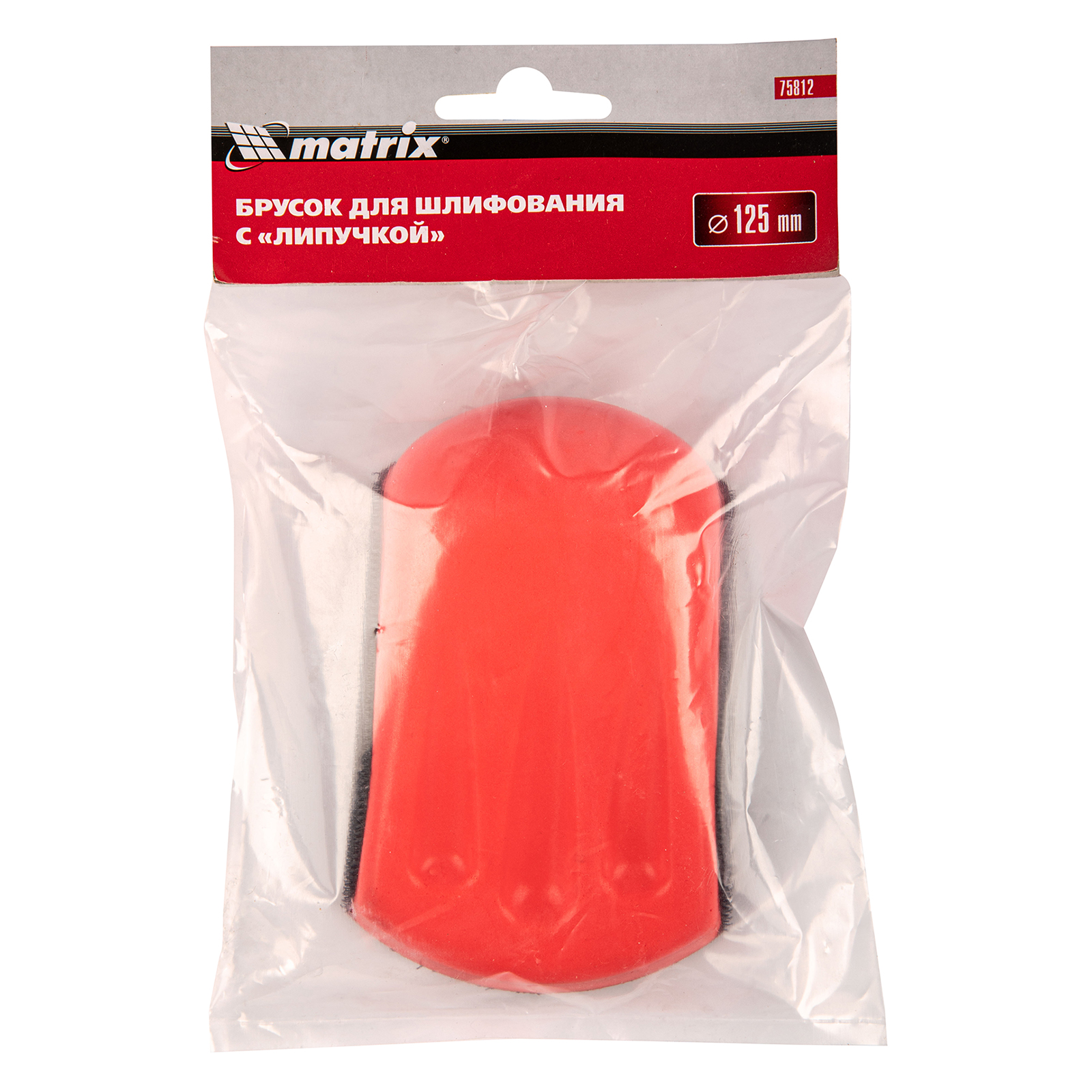 <p>Брусок для шлифования Matrix 75812 с посадочным диаметром 125 мм, с «липучкой», — альтернатива шлифовальной машинке, используется для обработки металла, древесины, камня и пластмассы при проведении ремонтных, отделочных, малярных работ. Позволяет надежно зафиксировать абразивные круги (диски) на ворсовой основе диаметром 125 мм.</p><h2>Преимущества</h2><ul><li>Надежная фиксация — благодаря креплению «велкро» шлифдиск крепко держится на бруске даже при интенсивных нагрузках.</li><li>Прочность и долговечность — брусок выполнен из противоударного полипропилена, устойчив к температурным перепадам, не теряет цвет.</li><li>Удобная эксплуатация — шлифовальный круг крепится не только на основание, но и на боковые части бруска.</li><li>Длительная работа без ощущения усталости — брусок весит 79 г, подпальцевые выемки обеспечивают удобный хват.</li></ul>