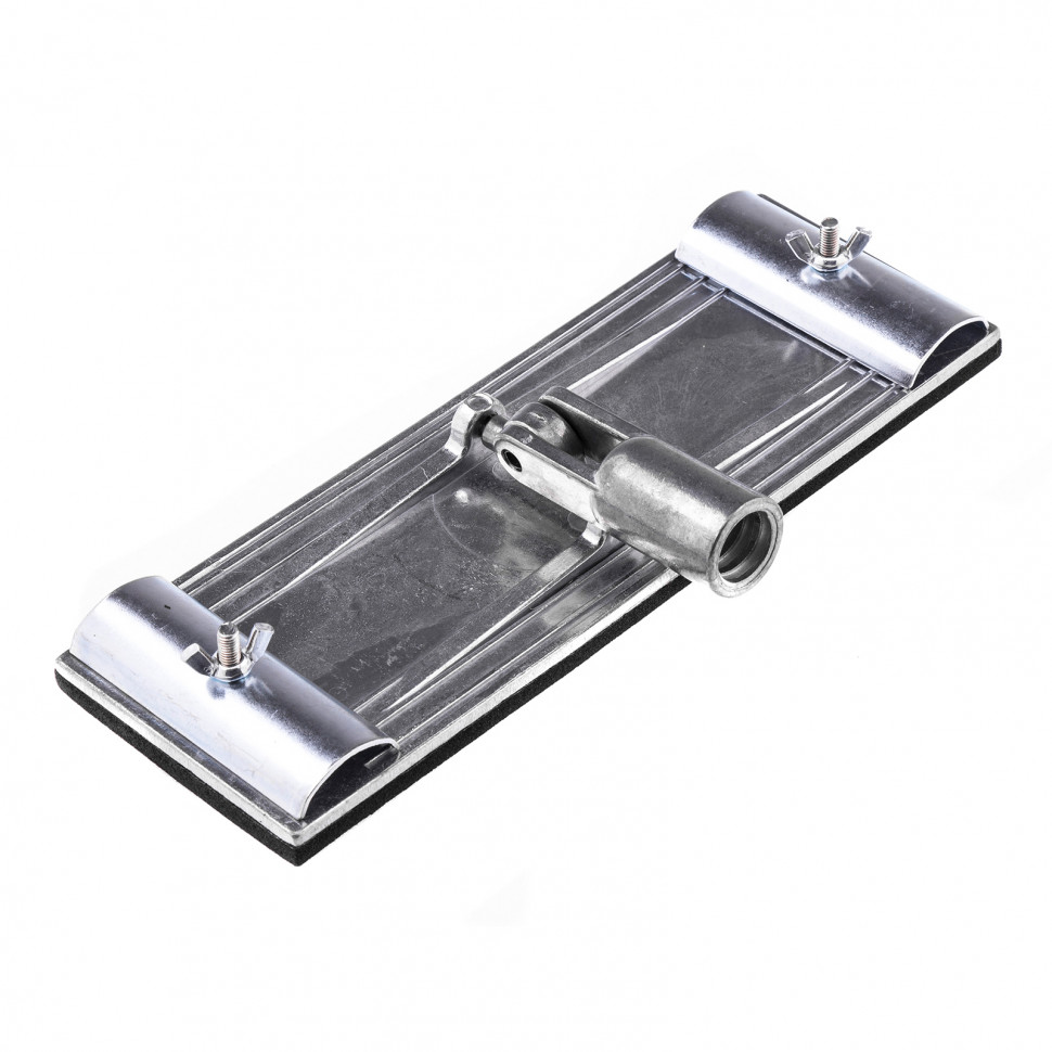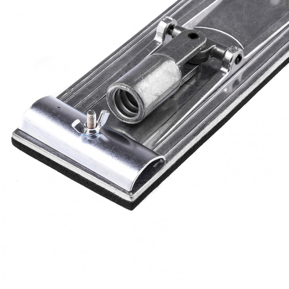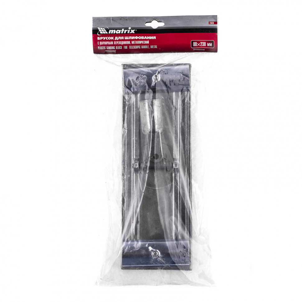 Металлический брусок для шлифования Matrix 75838 с подошвой размером 230 х 80 мм, с шарнирным переходником, предназначен для абразивной обработки поверхностей с помощью зафиксированного шлифлиста или сетки любой зернистости. Используется для подготовки потолков, стен и других поверхностей к отделочным работам. Благодаря возможности установки раздвижной ручки брусок особенно удобен при шлифовке участков, расположенных на высоте или в труднодоступных местах.