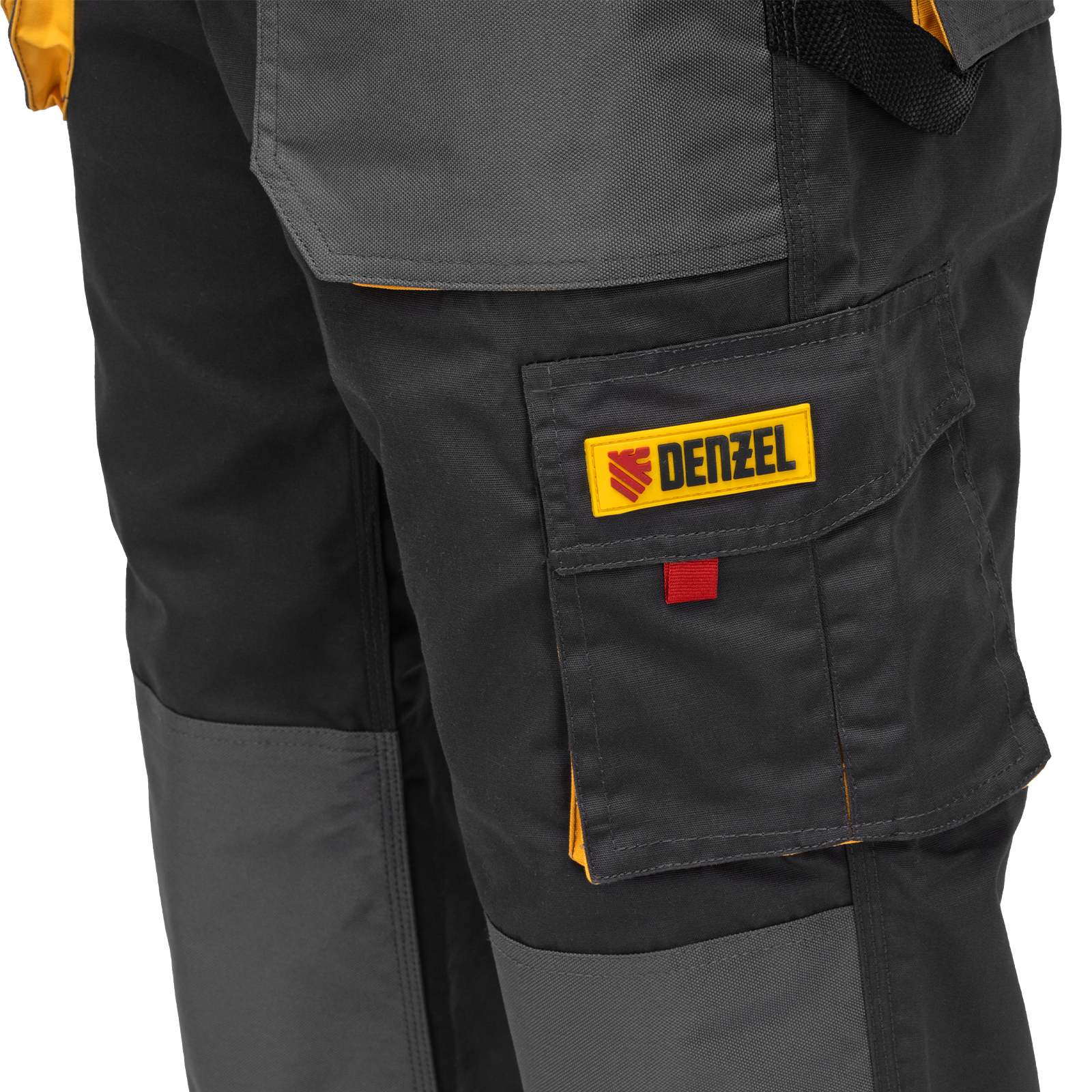 Рабочие брюки Denzel 90385 размера XXL рассчитаны на рост 188-191 см и используются для выполнения профессиональных строительных, ремонтных, сантехнических и производственных работ в теплое время года или в отапливаемом помещении. Защищают пользователя от общих производственных загрязнений, нетоксичной пыли, ветра и незначительных механических воздействий. Изготовлены из ткани плотностью 260 г/м² (65% полиэфир, 35% хлопок). За счет наличия хлопковых волокон в составе ткань хорошо пропускает воздух и приятна на теле, полиэфир обеспечивает устойчивость к истиранию. Брюки выполнены в практичном темно-сером цвете.