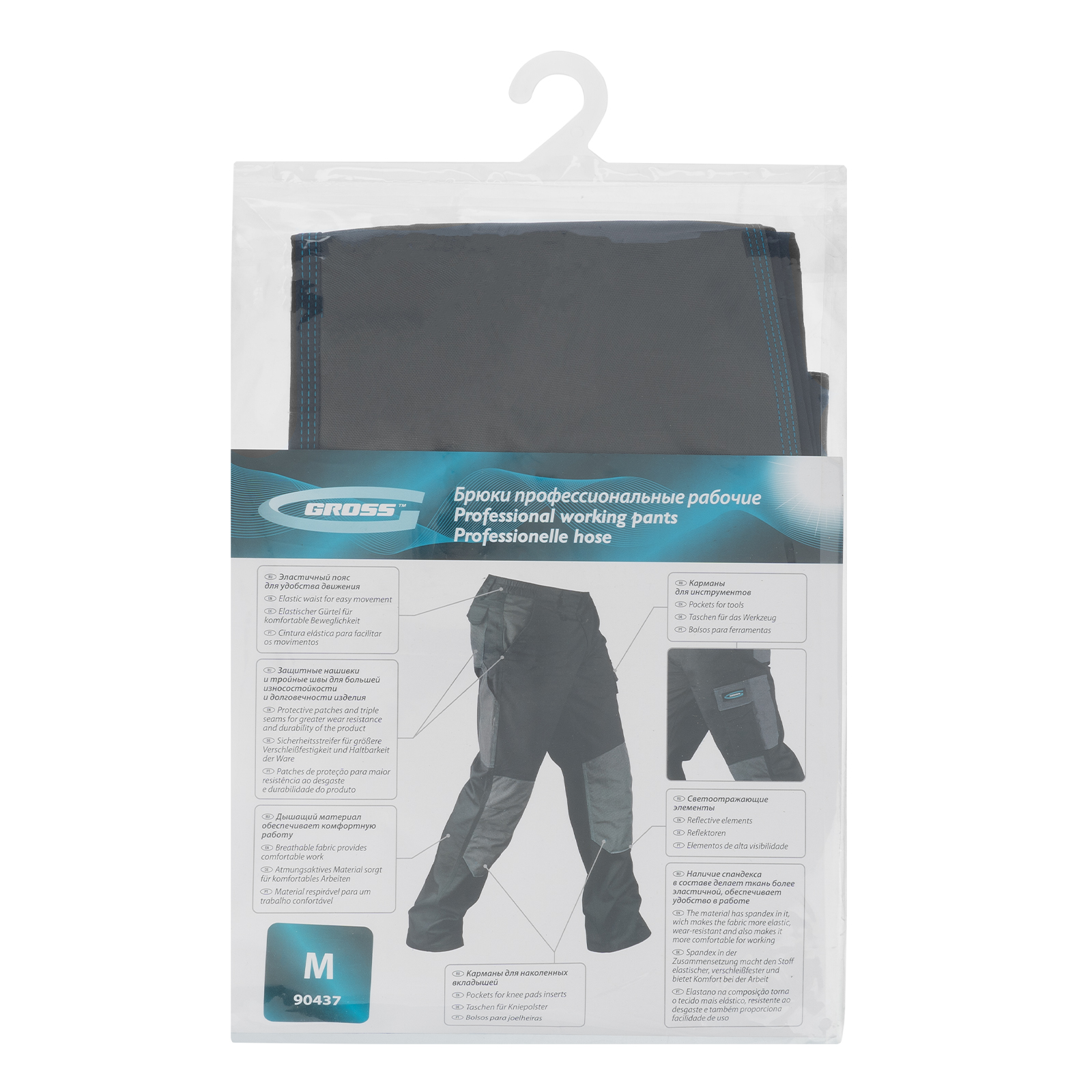 Профессиональные рабочие брюки Gross 90437 размера М рассчитаны на рост 172-178 см. Защищают пользователя от общих производственных загрязнений, нетоксичной пыли, ветра и незначительных механических воздействий. Подойдут для выполнения различных видов работ в теплое время года или в отапливаемом помещении. Выполнены в практичном темно-сером цвете из ткани с 97-процентным содержанием хлопка и 3-процентным содержанием спандекса. За счет наличия хлопковых волокон в составе ткань прекрасно пропускает воздух и приятна на теле, а спандекс делает ее более эластичной, поэтому в брюках удобно работать.