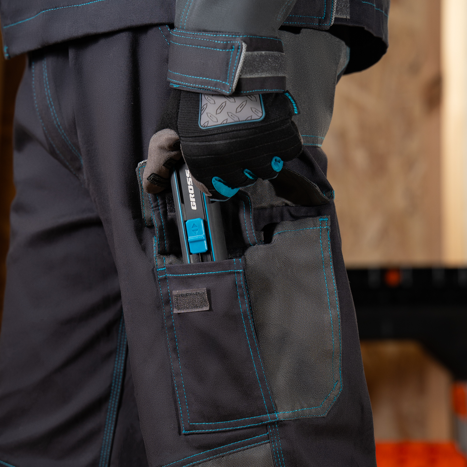 - Карманы на липучках — мобильный телефон, крепеж и прочие мелочи не выпадут во время работы.