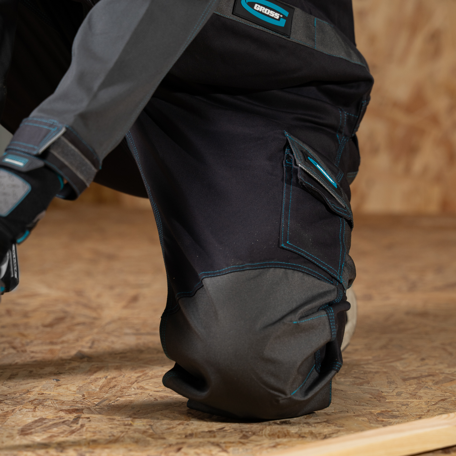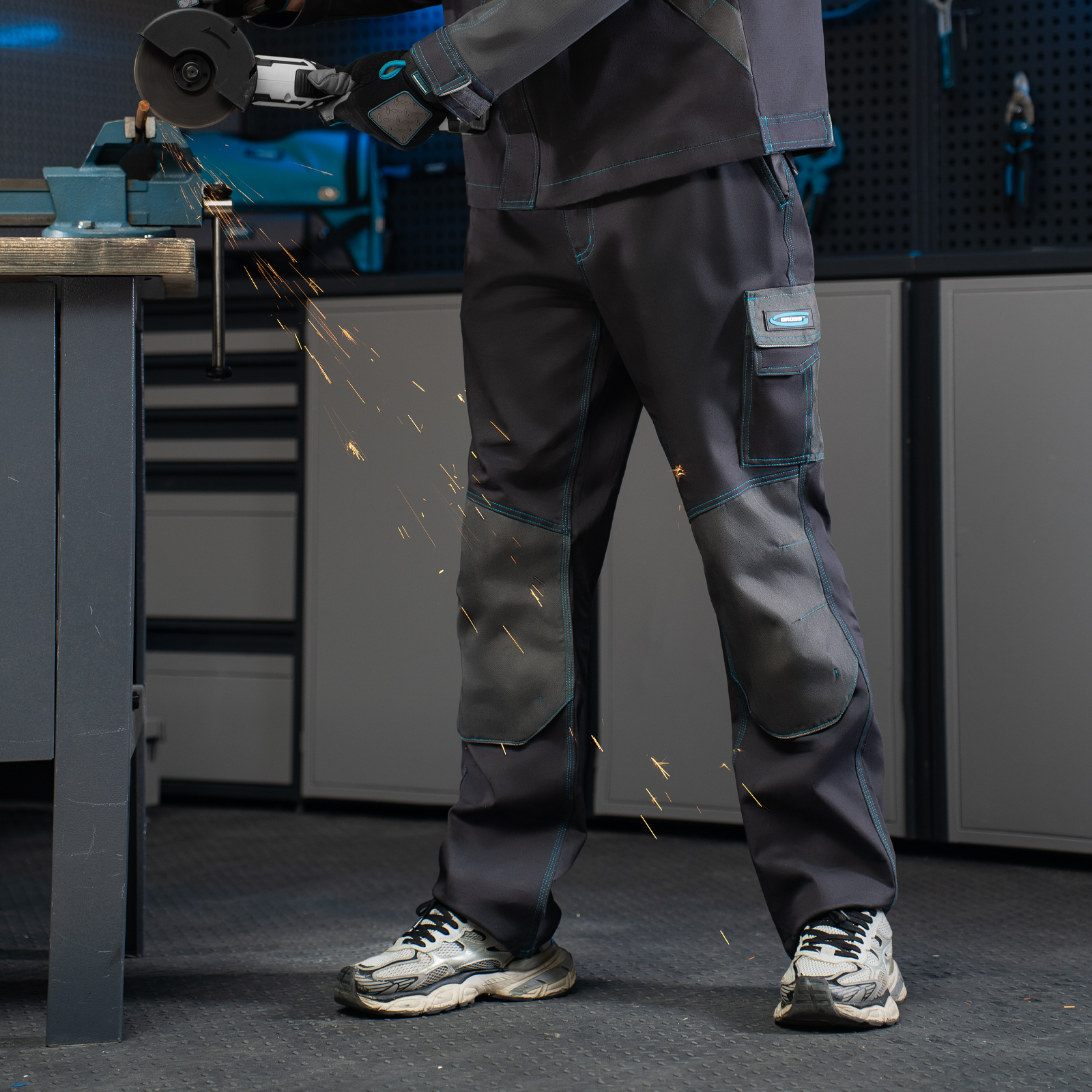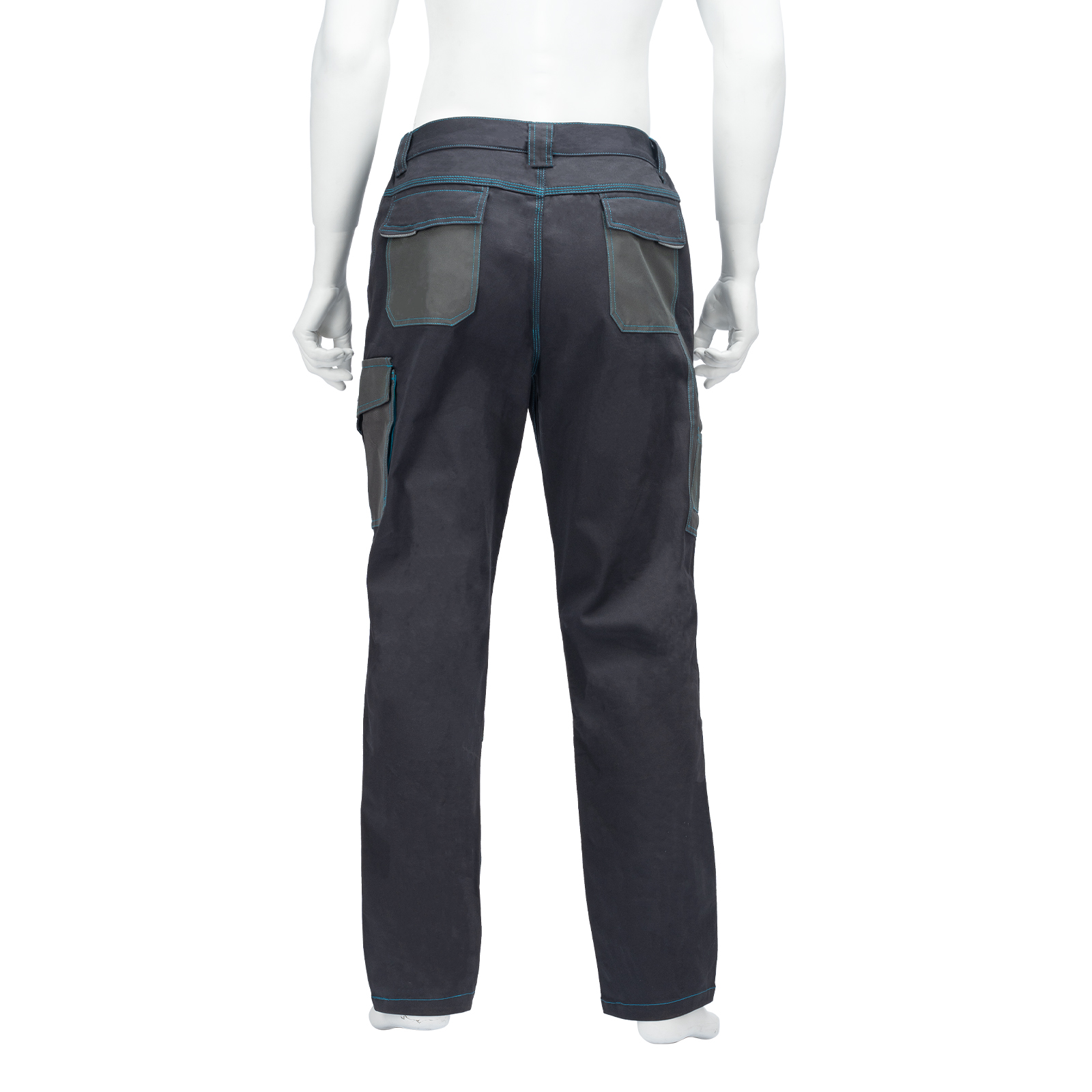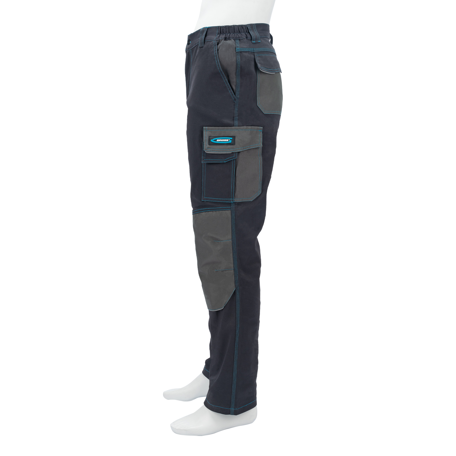 Профессиональные рабочие брюки Gross 90441 размера XXXL рассчитаны на рост 186-192 см. Защищают пользователя от общих производственных загрязнений, нетоксичной пыли, ветра и незначительных механических воздействий. Подойдут для выполнения различных видов работ в теплое время года или в отапливаемом помещении. Выполнены в практичном темно-сером цвете из ткани с 97-процентным содержанием хлопка и 3-процентным содержанием спандекса. За счет наличия хлопковых волокон в составе ткань прекрасно пропускает воздух и приятна на теле, а спандекс делает ее более эластичной, поэтому в брюках удобно работать.