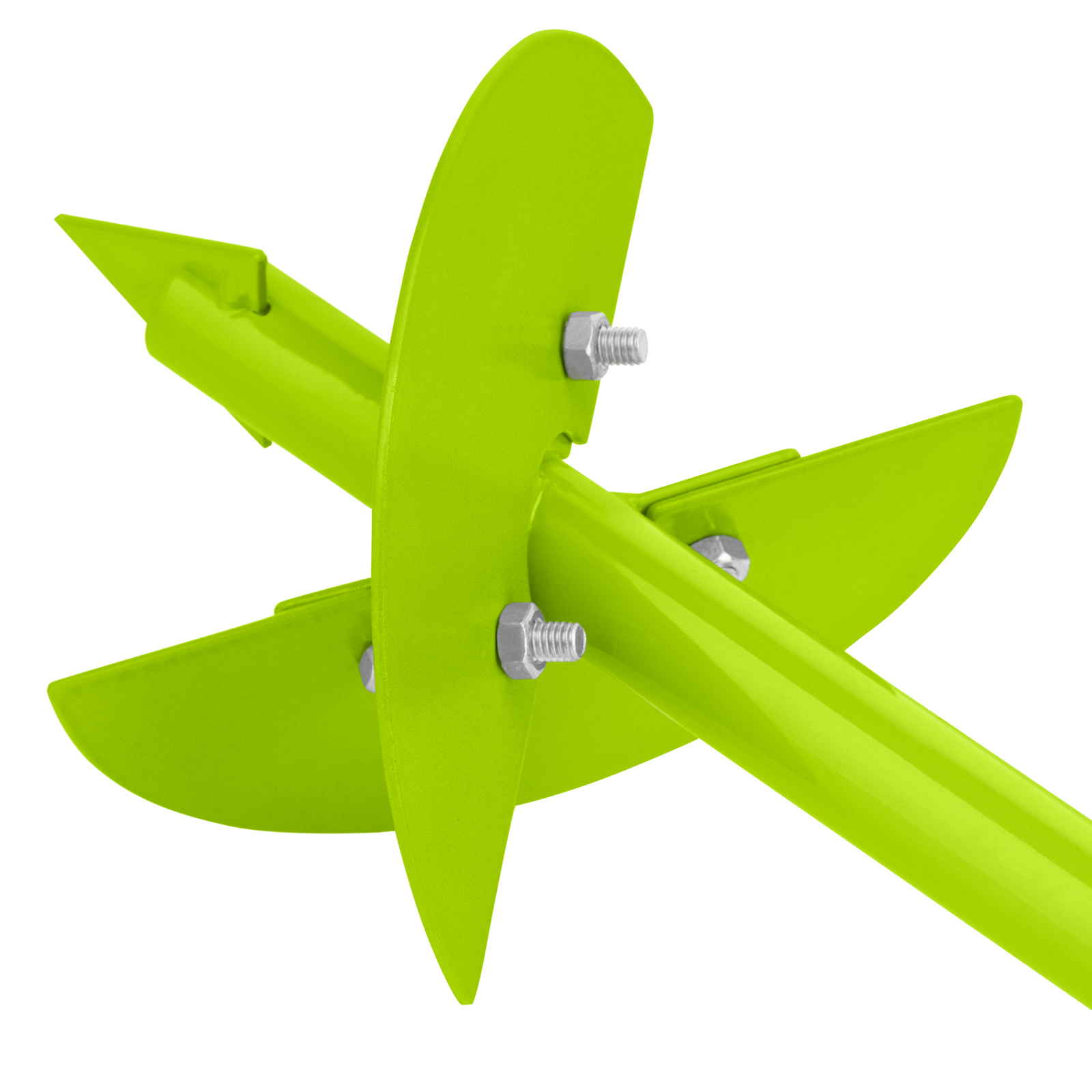 Лопастной бур Сибртех 64448 длиной 1000 мм, со сменными ножами диаметром 150 мм и 200 мм, предназначен для садовых и строительных работ на приусадебном участке. Применяется для бурения отверстий под опоры ограждений, столбов, скамеек, беседок и других конструкций, создания углублений и лунок для посадки растений или внесения удобрений.