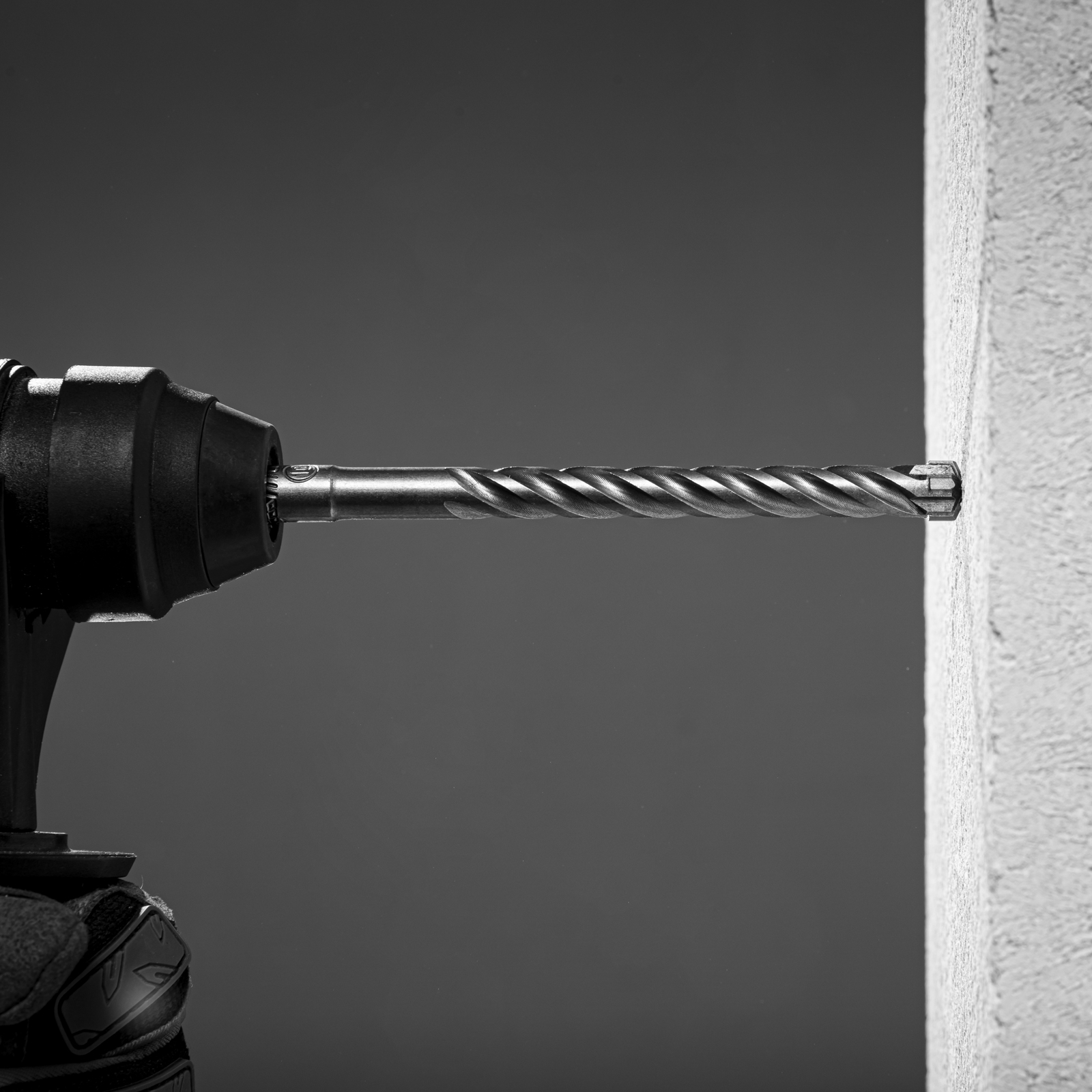 - Высокий ресурс — крестовая режущая пластина из сверхтвердого сплава карбида вольфрама 80–90 HRC долговечна, эффективно сверлит камень и не ломается при попадании в арматуру.