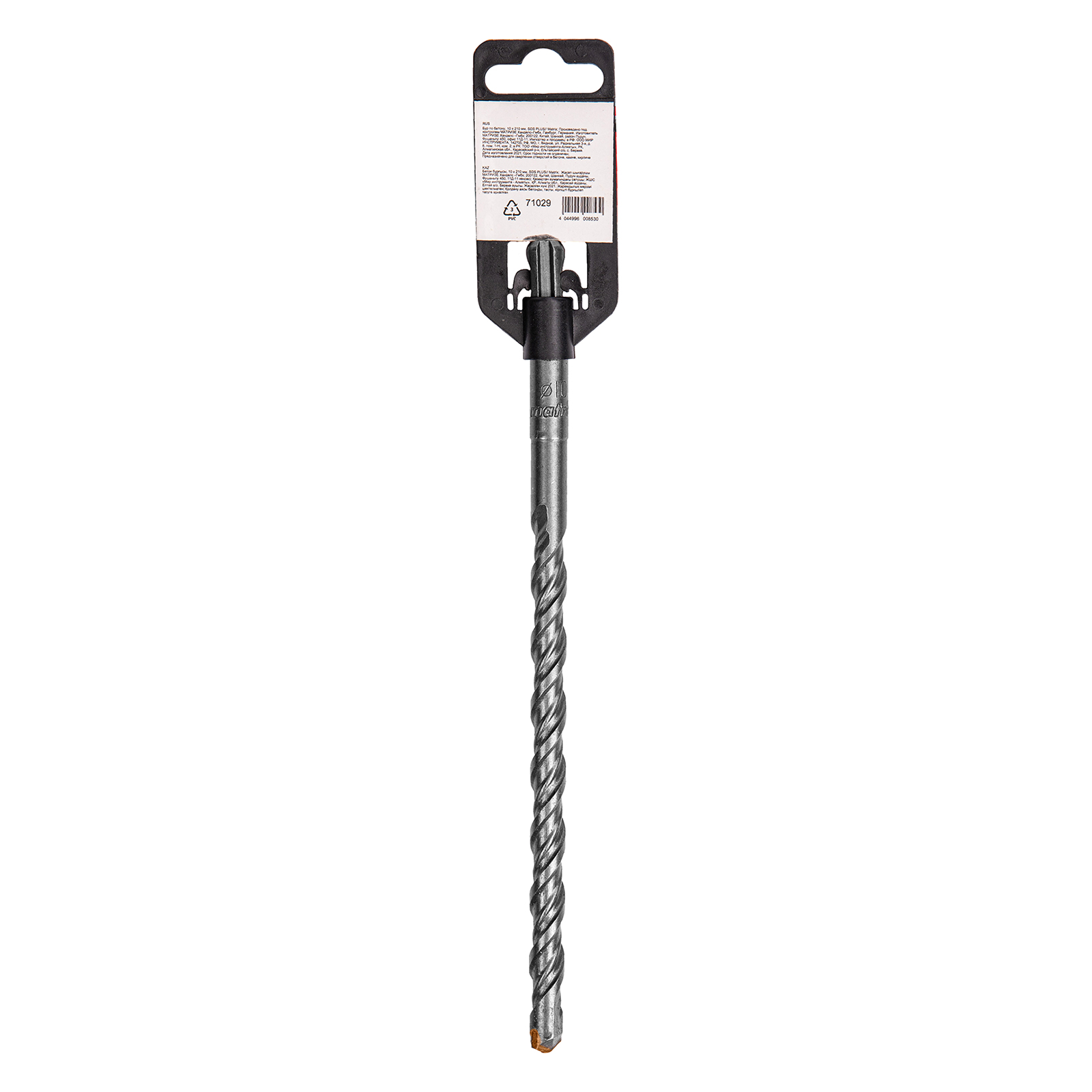 Бур по бетону Matrix 71029, 10 х 210 мм, SDS PLUS предназначен для установки на перфоратор и позволяет получать отверстия диаметром 10 мм в бетоне, камне и кирпиче. Он эффективно решает поставленные задачи благодаря режущей пластине из высокотвердого сплава карбида вольфрама ВК8 твердостью 80-90 HRC.