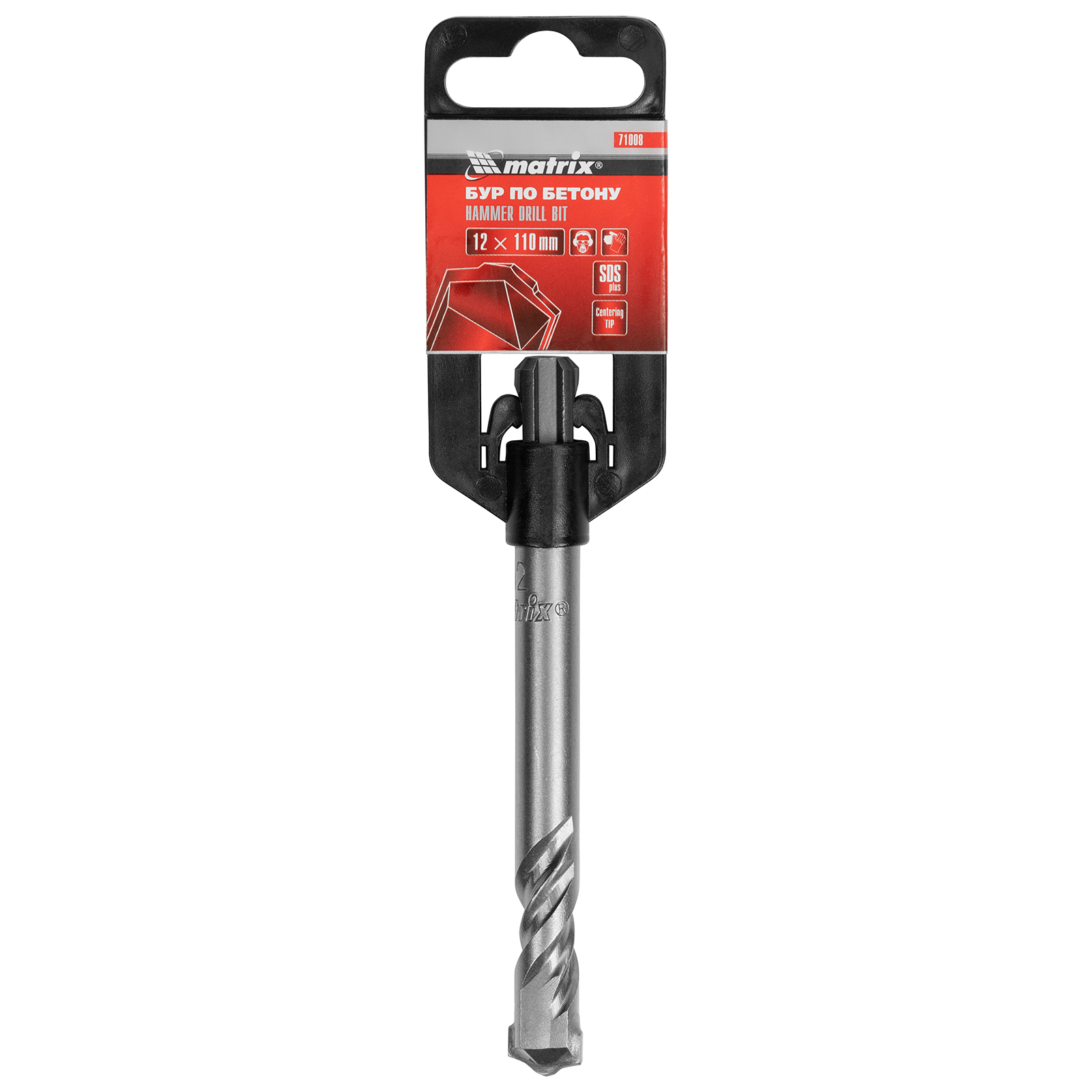 Бур по бетону Matrix 71008 длиной 110 мм, с хвостовиком SDS-plus, предназначен для установки на перфоратор и получения отверстий диаметром 12 мм в бетоне, камне и кирпиче. Позволяет эффективно решать поставленные задачи благодаря режущей пластине из высокотвердого сплава карбида вольфрама ВК8 твердостью 80-90 HRC.