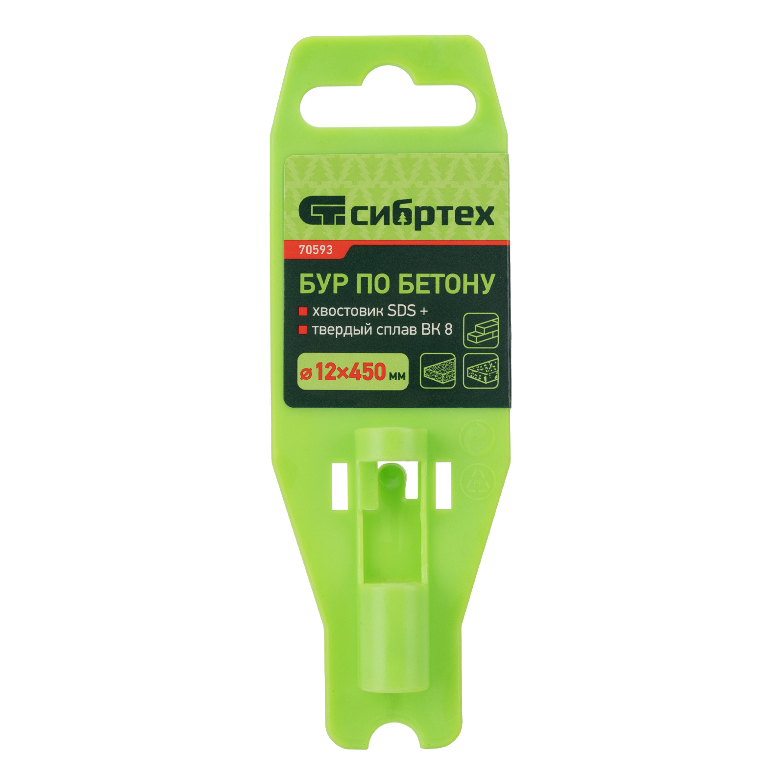 Бур по бетону Сибртех 70593 размером 12 х 450 мм предназначен для перфораторов с хвостовиком типа SDS Plus. Способен сверлить отверстия в материалах из бетона и кирпича, а также в искусственном и природном камне. Бур отлично подойдет для домашнего использования со средним объемом работ.