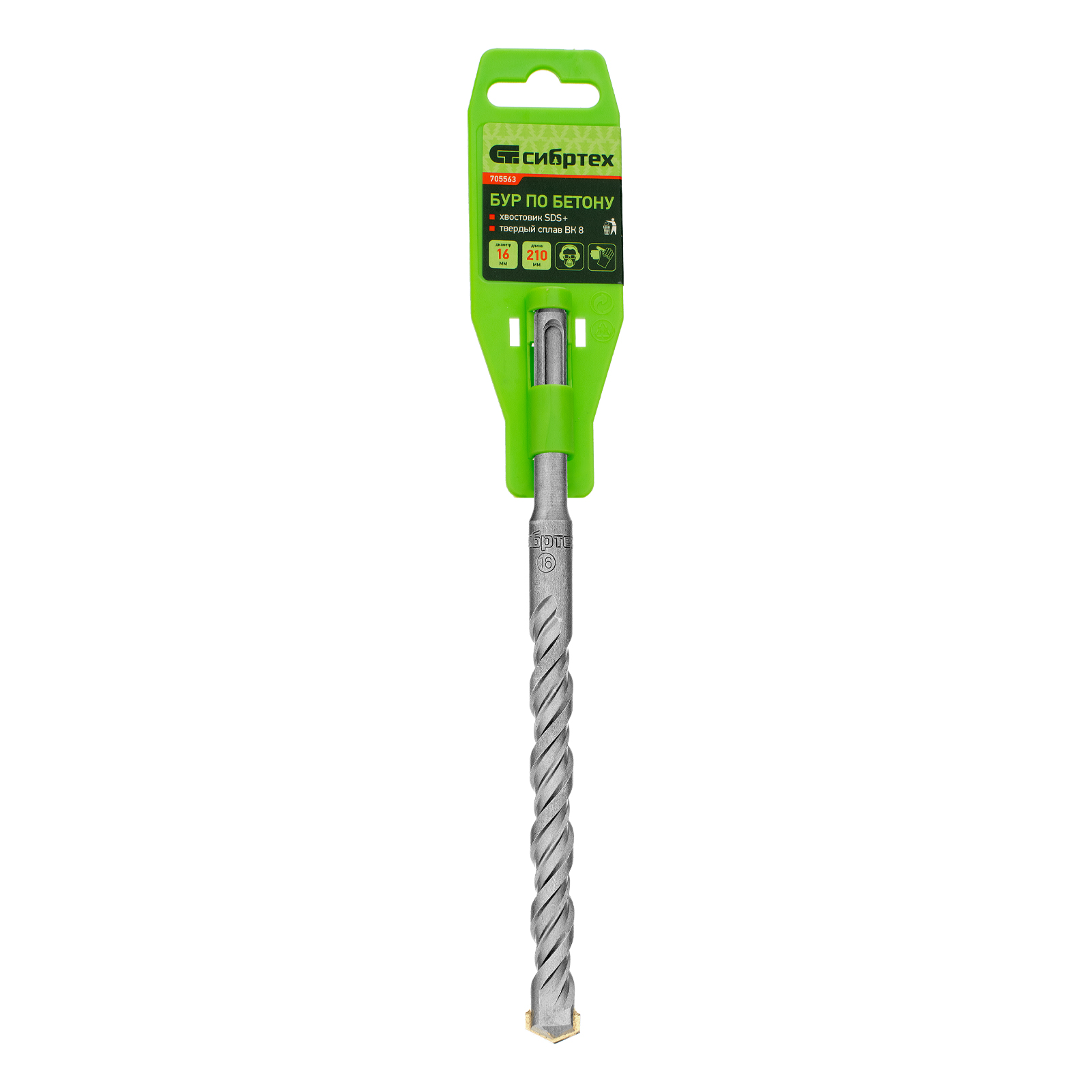 Бур по бетону Сибртех 705563 размером 16 х 210 мм предназначен для перфораторов с хвостовиком типа SDS Plus. Способен сверлить отверстия в материалах из бетона и кирпича, а также в искусственном и природном камне. Бур отлично подойдет для домашнего использования со средним объемом работ.