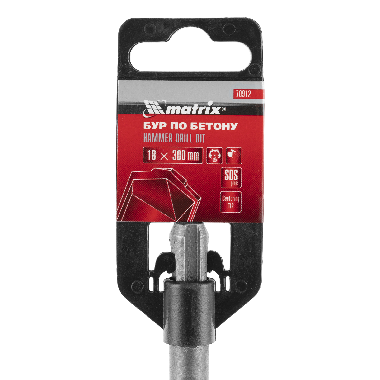 Бур по бетону Matrix 70912, 18 х 300 мм, SDS PLUS предназначен для установки на перфоратор и позволяет получать отверстия диаметром 18 мм в бетоне, камне и кирпиче. Он эффективно решает поставленные задачи благодаря режущей пластине из высокотвердого сплава карбида вольфрама ВК8 твердостью 80-90 HRC.