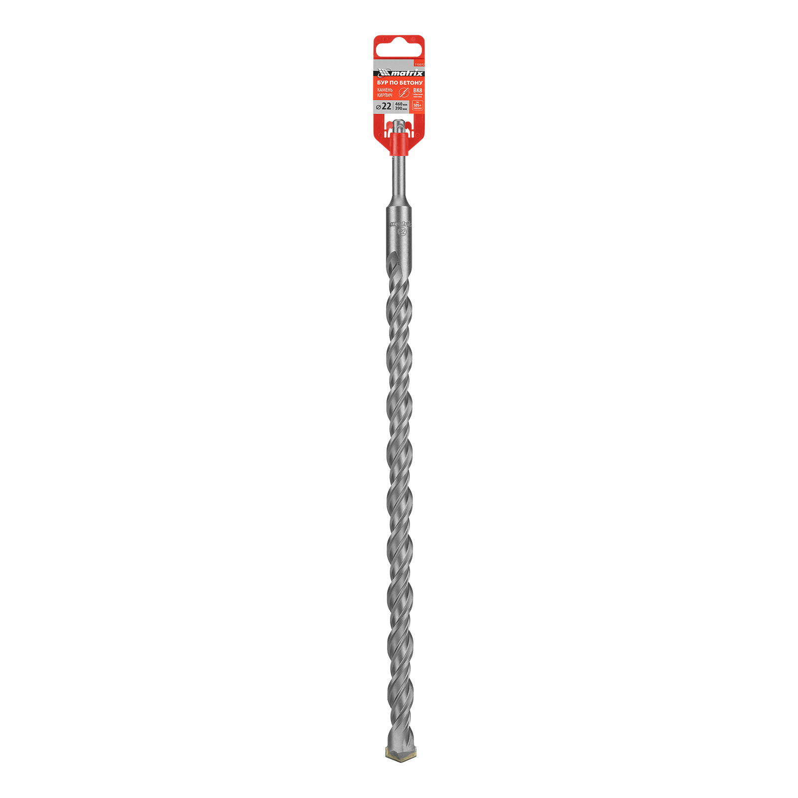 Бур по бетону Matrix 710072 длиной 460 мм, с хвостовиком SDS-plus, предназначен для установки на перфоратор и получения отверстий диаметром 22 мм в бетоне, камне и кирпиче. Позволяет эффективно решать поставленные задачи благодаря режущей пластине из высокотвердого сплава карбида вольфрама ВК8 твердостью 80-90 HRC.