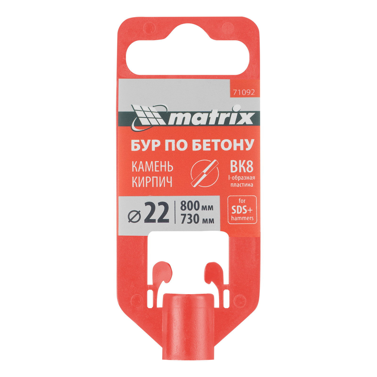 Бур по бетону Matrix 71092 длиной 800 мм, с хвостовиком SDS-plus, предназначен для установки на перфоратор и получения отверстий диаметром 22 мм в бетоне, камне и кирпиче. Позволяет эффективно решать поставленные задачи благодаря режущей пластине из высокотвердого сплава карбида вольфрама ВК8 твердостью 80-90 HRC.