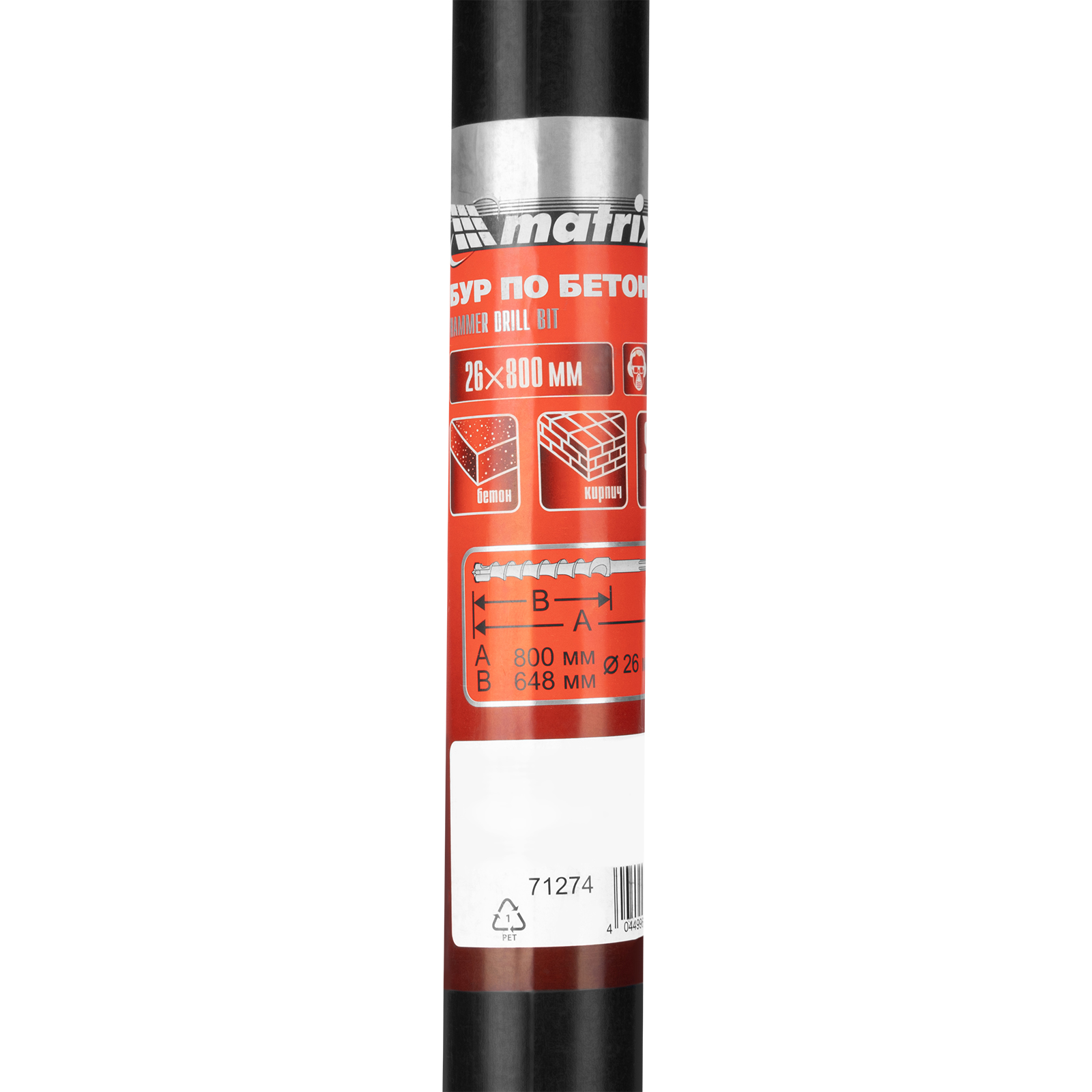 Бур по бетону Matrix 71274 размером 26 х 800 мм используется в качестве оснастки на тяжелых перфораторах с хвостовиком SDS MAX. Подходит для сверления глубоких отверстий в кирпиче и особо прочных материалах: армированном бетоне, природном и искусственном камне.